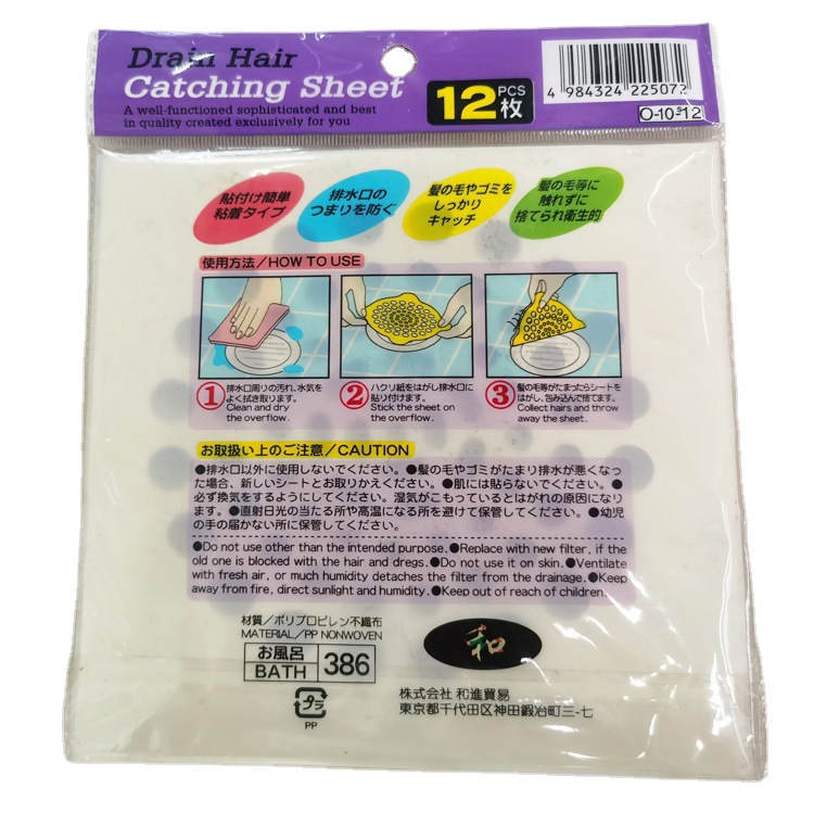 Product Description:Hair blocks the drain, clean it by wiping the drain clean; apply the suitable drain cover to the drain; it can effectively prevent hair and other items that are easy to block the sewer. After use, just tear it off and throw it away, which saves you from the trouble of cleaning hair in the drain, simple and convenient. This product is exported to Japan, with excellent quality.Adopt high-quality adhesive, no residue after peeling.