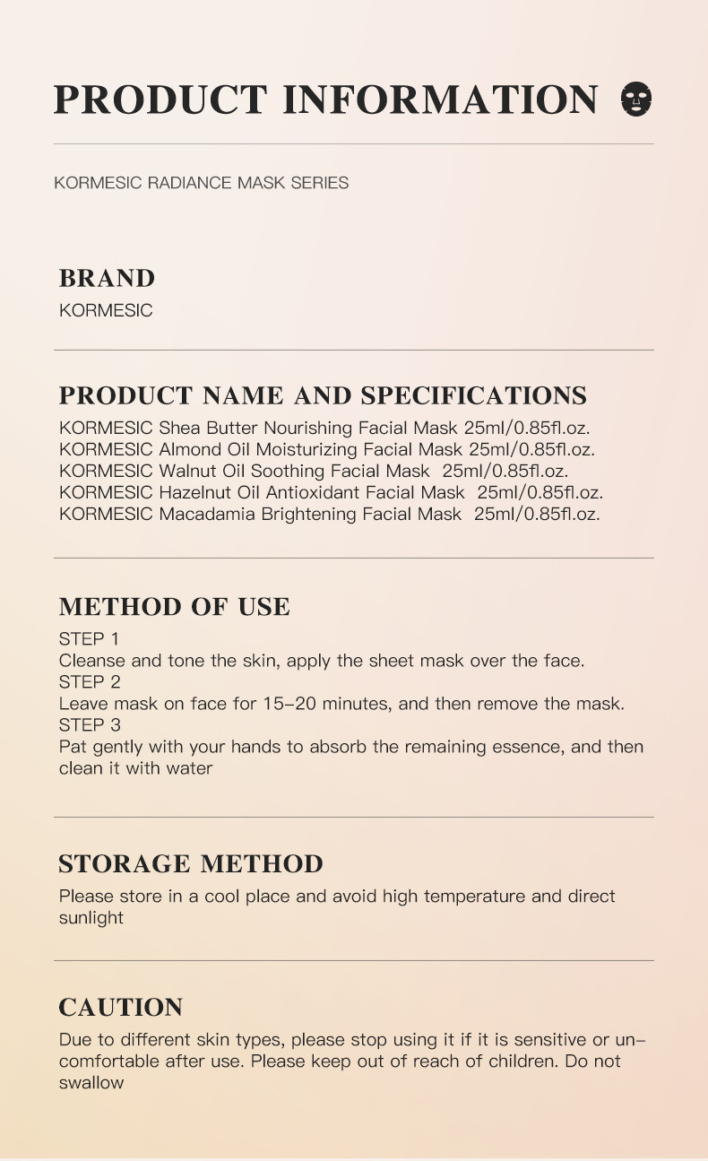 kormesic macadamia nut mask 25ml [only for foreign trade export sales, domestic sales are prohibited, purchase is default