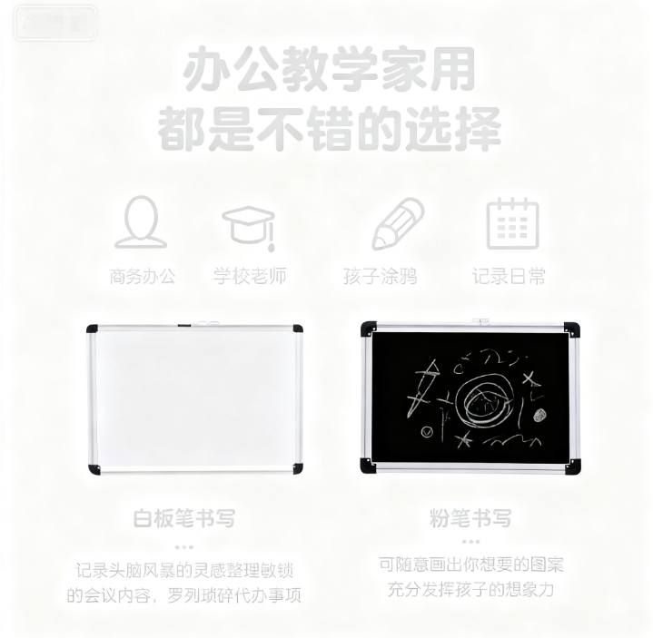 1This whiteboard is made of high-quality panel and three-coat paint, which is easy to write and wipe clean.