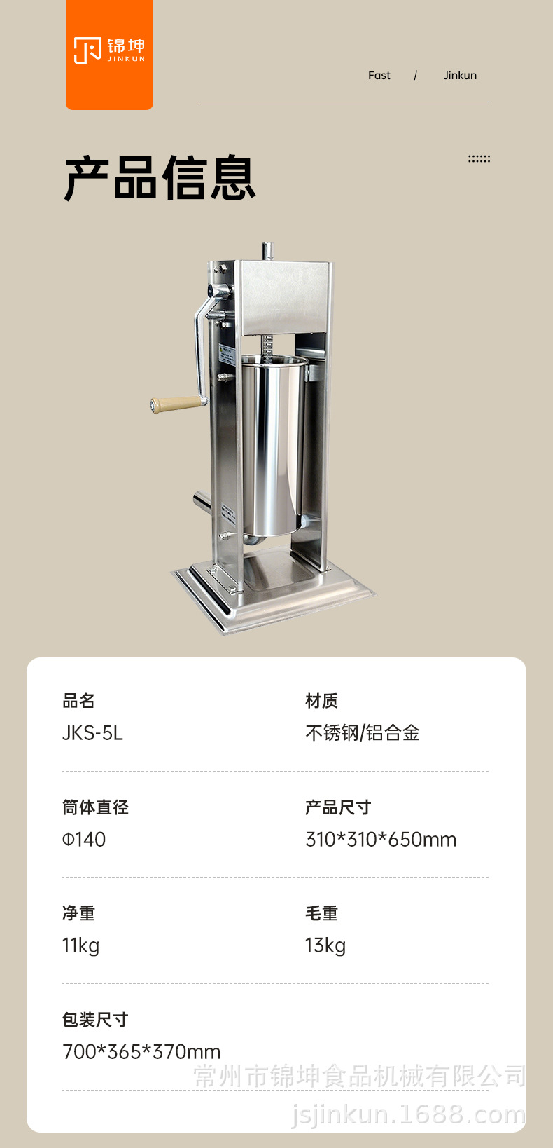 jinkun 304 stainless steel vacuum 10l sausage filler automatic pedal ham sausage sausage filling machine original production 中文版