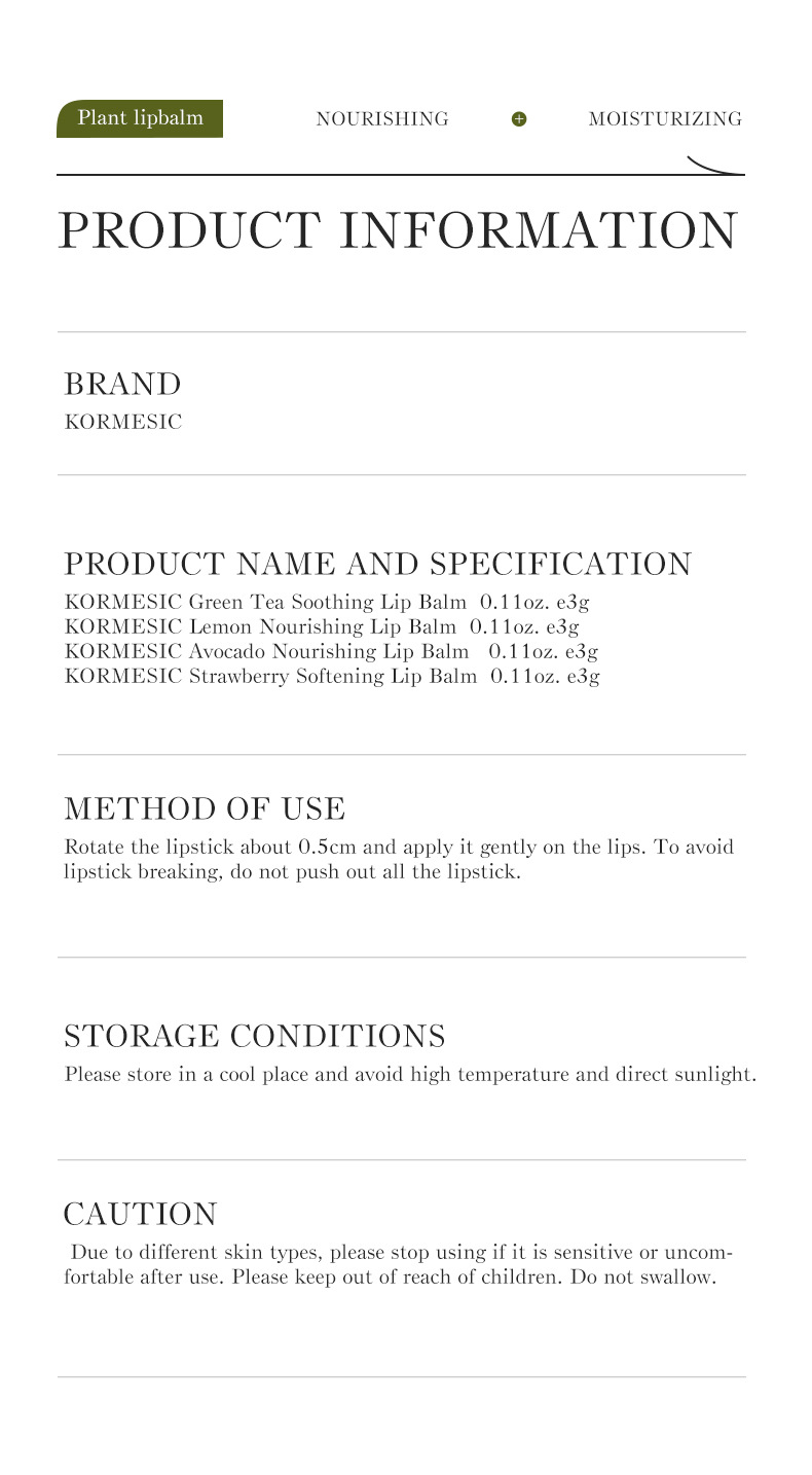 kormesic green tea lipstick 3g [only for export sales, prohibited domestic sales, purchase is the default disclaimer