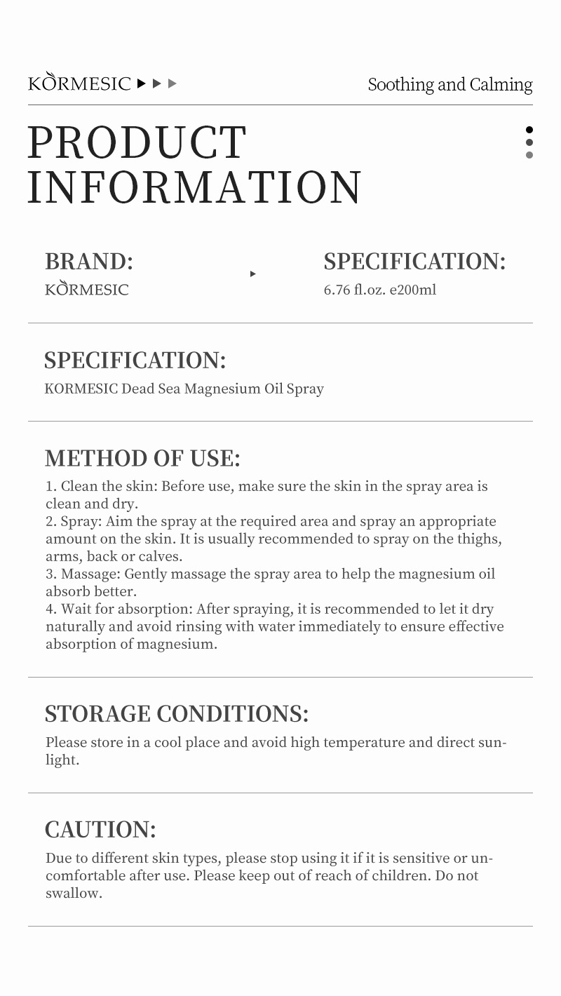 kormesic dead sea magnesium oil spray [only for foreign trade cross-border sales, domestic sales are prohibited, purchase is the default disclaimer
