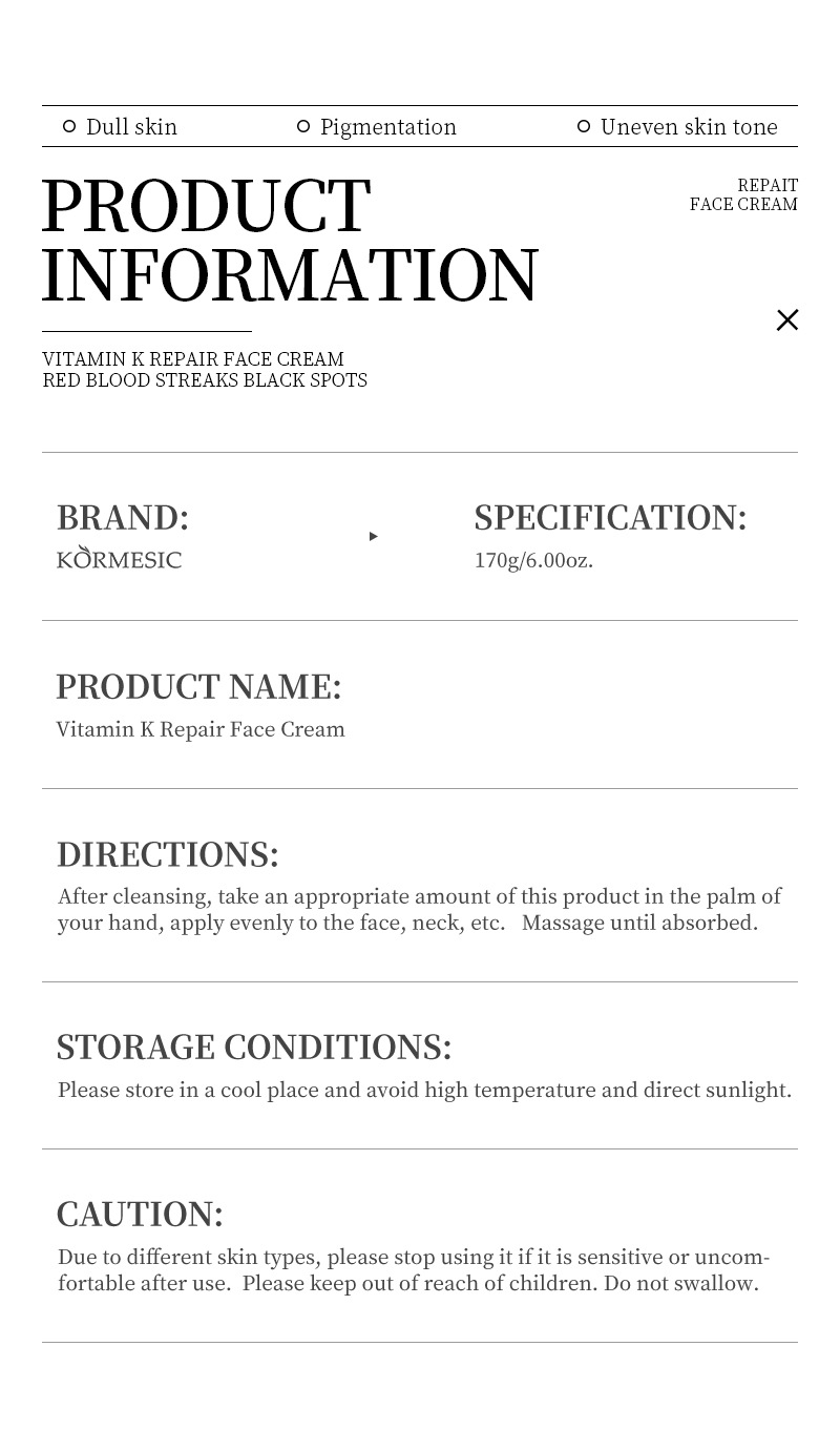 kormesicvk cream [only for export sales, prohibited domestic sales, purchase is the default disclaimer and commitment