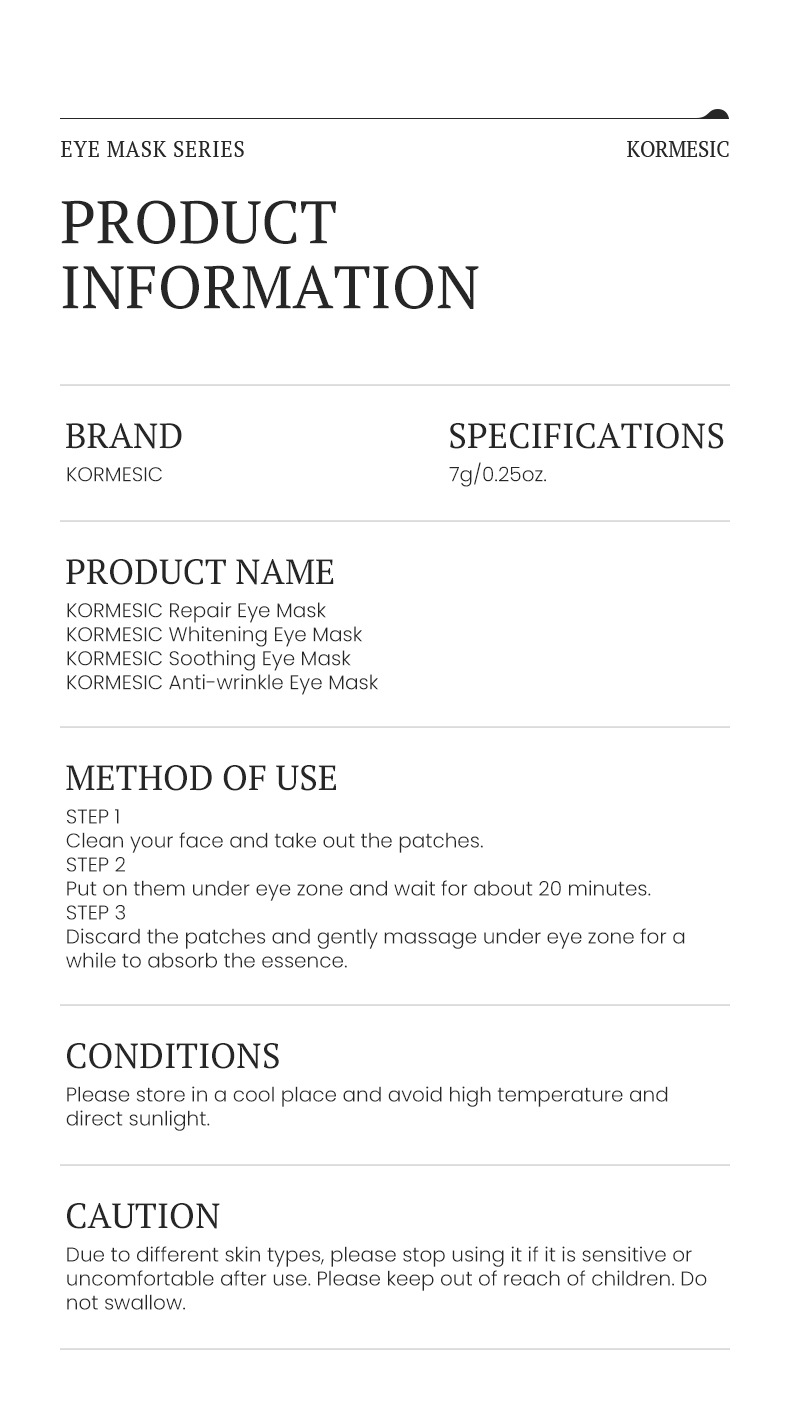 kormesic eye mask-7g [only for foreign trade export sales, domestic sales are prohibited, purchase is the default disclaimer
