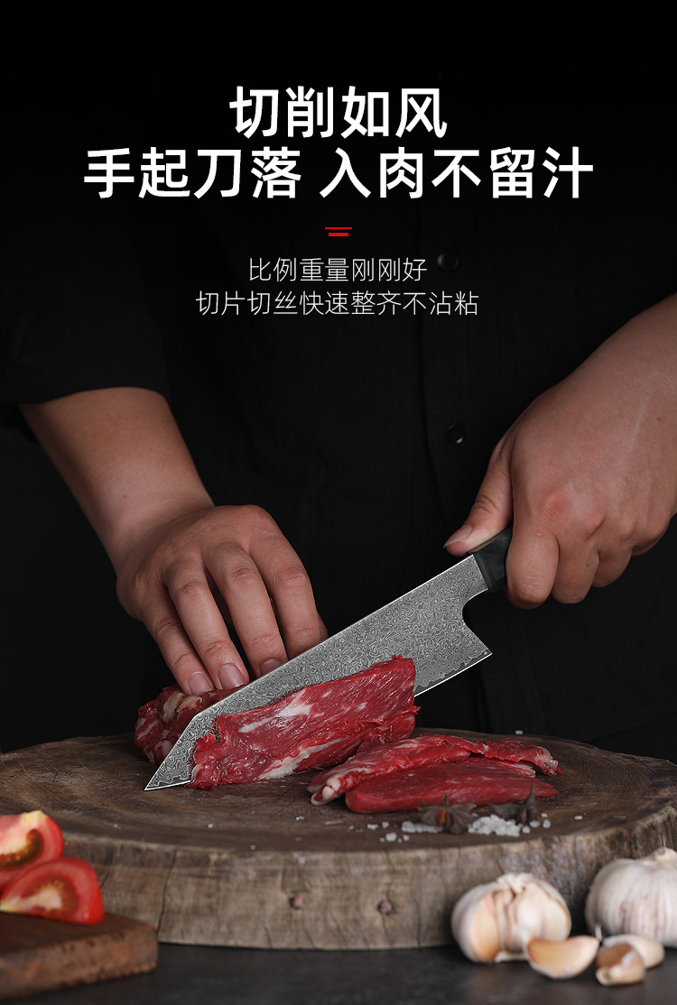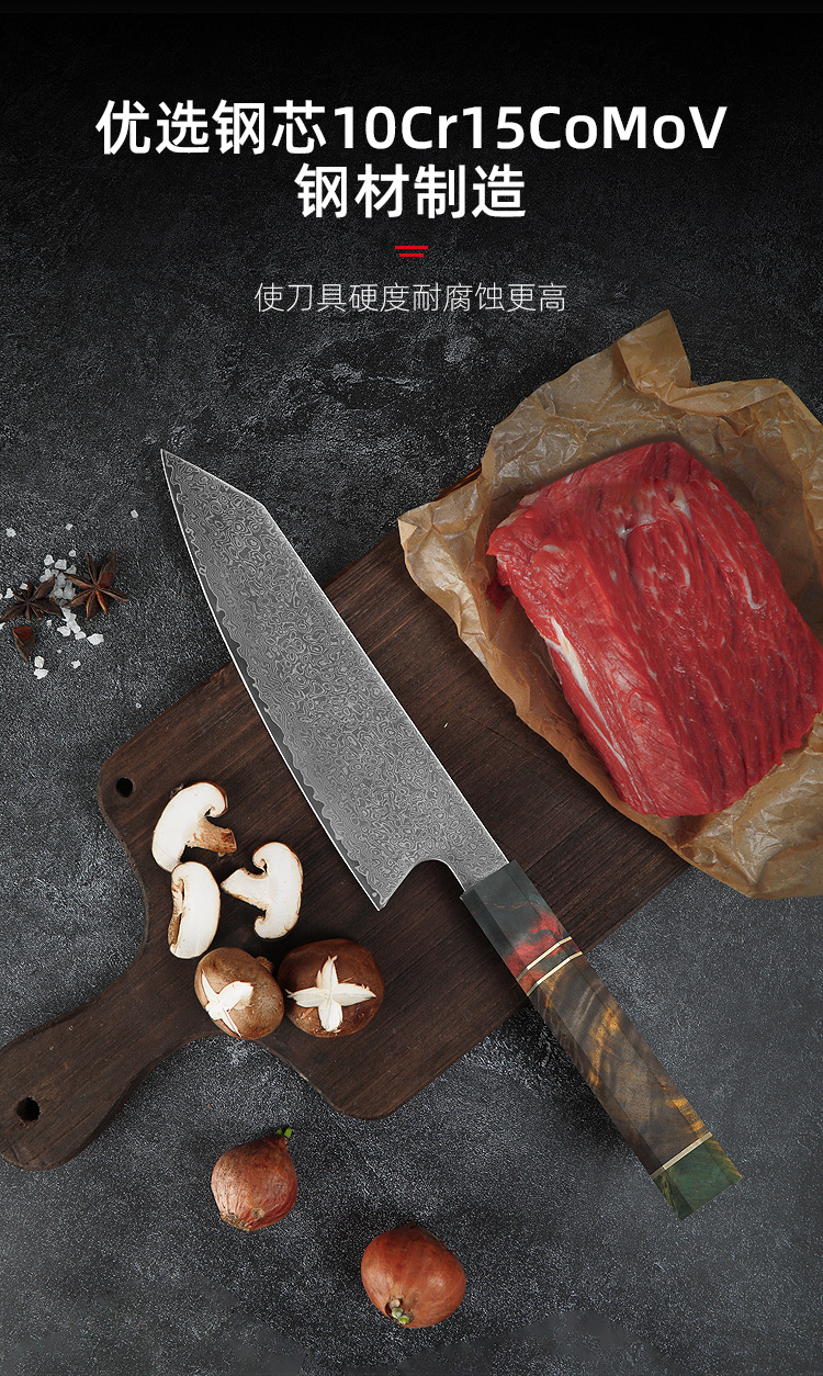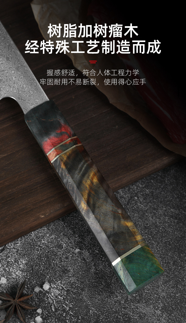 stable wood octagonal handle cooking knife