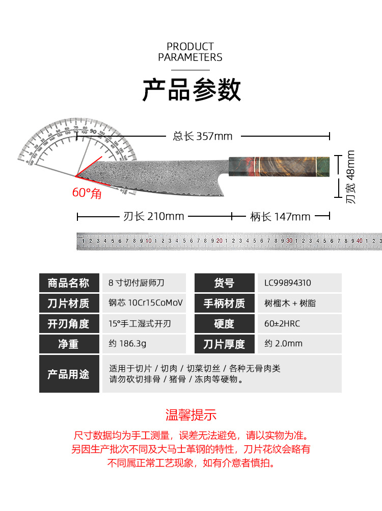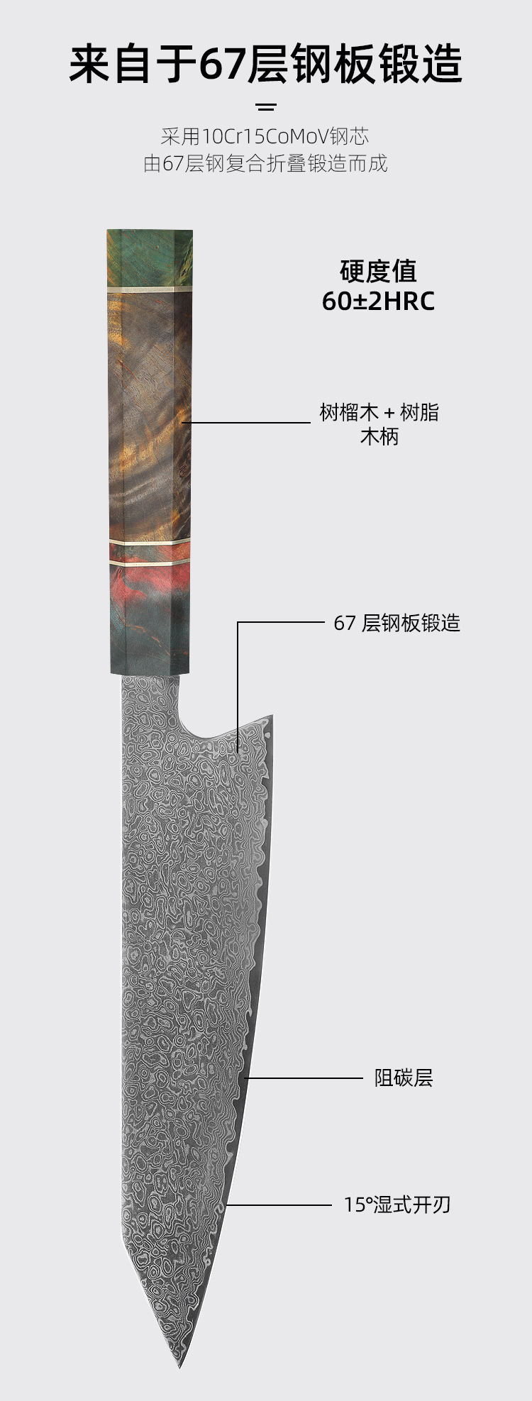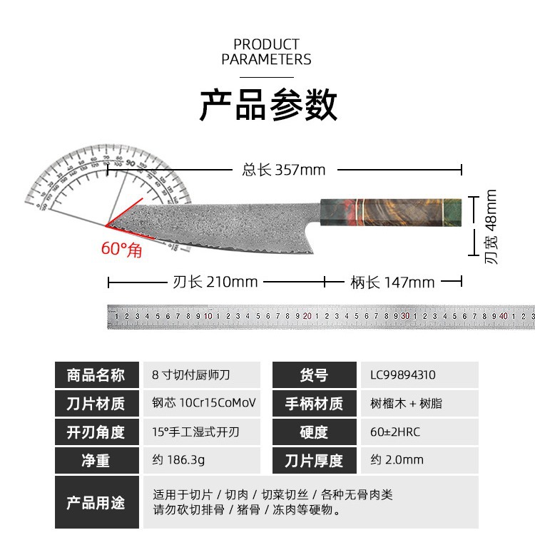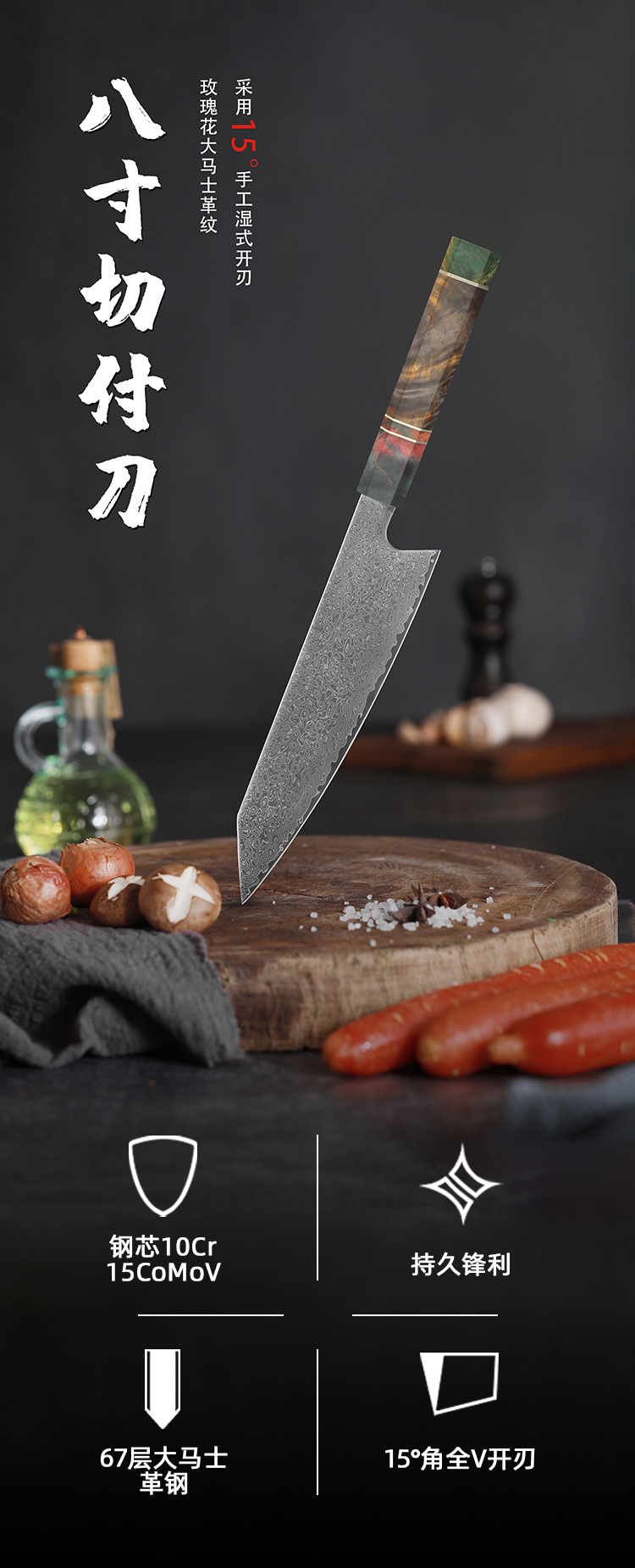 stable wood octagonal handle cooking knife