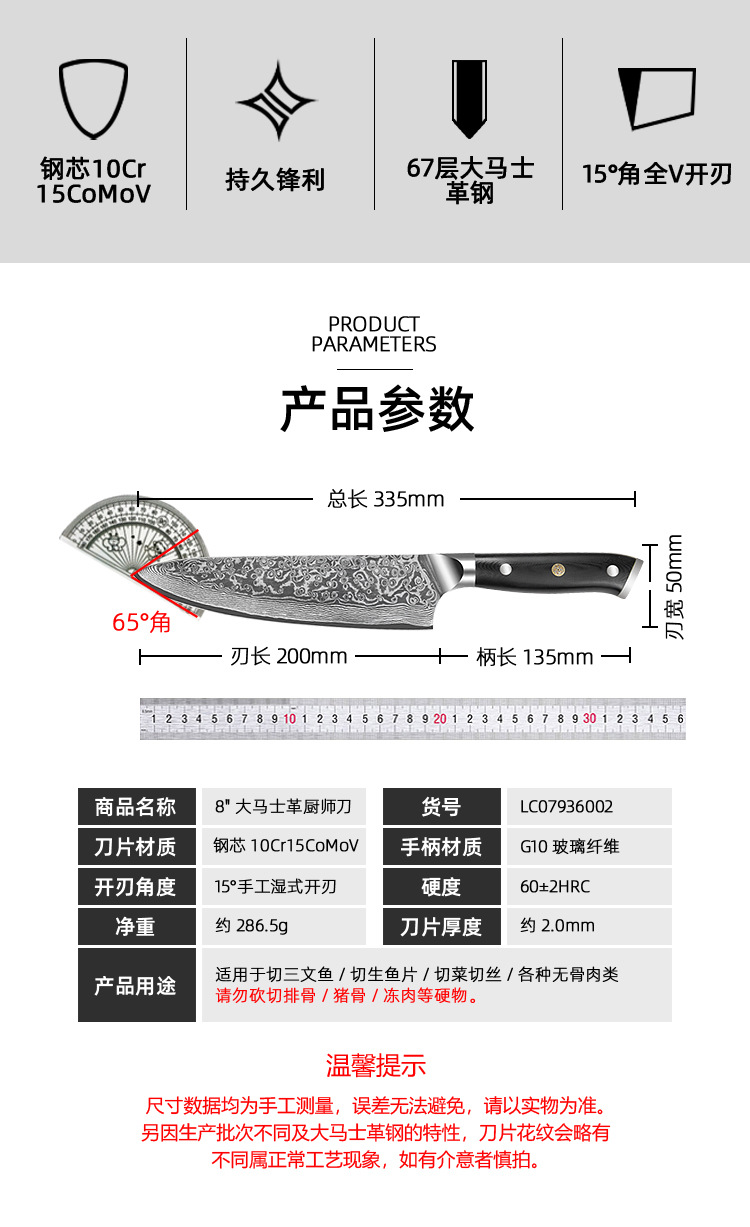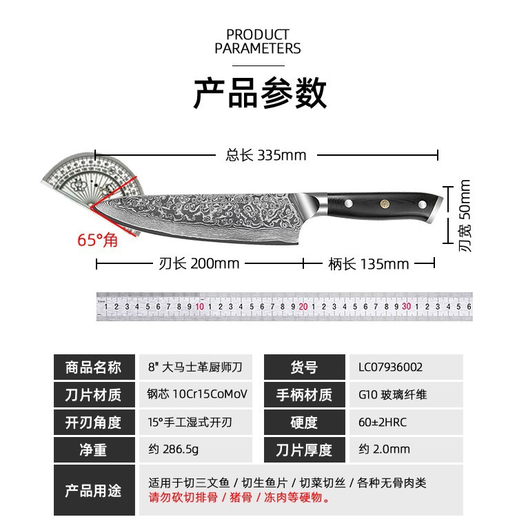 8-inch chef knife (raindrop pattern)
