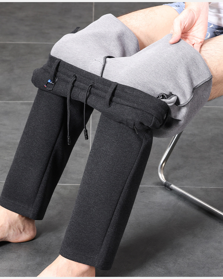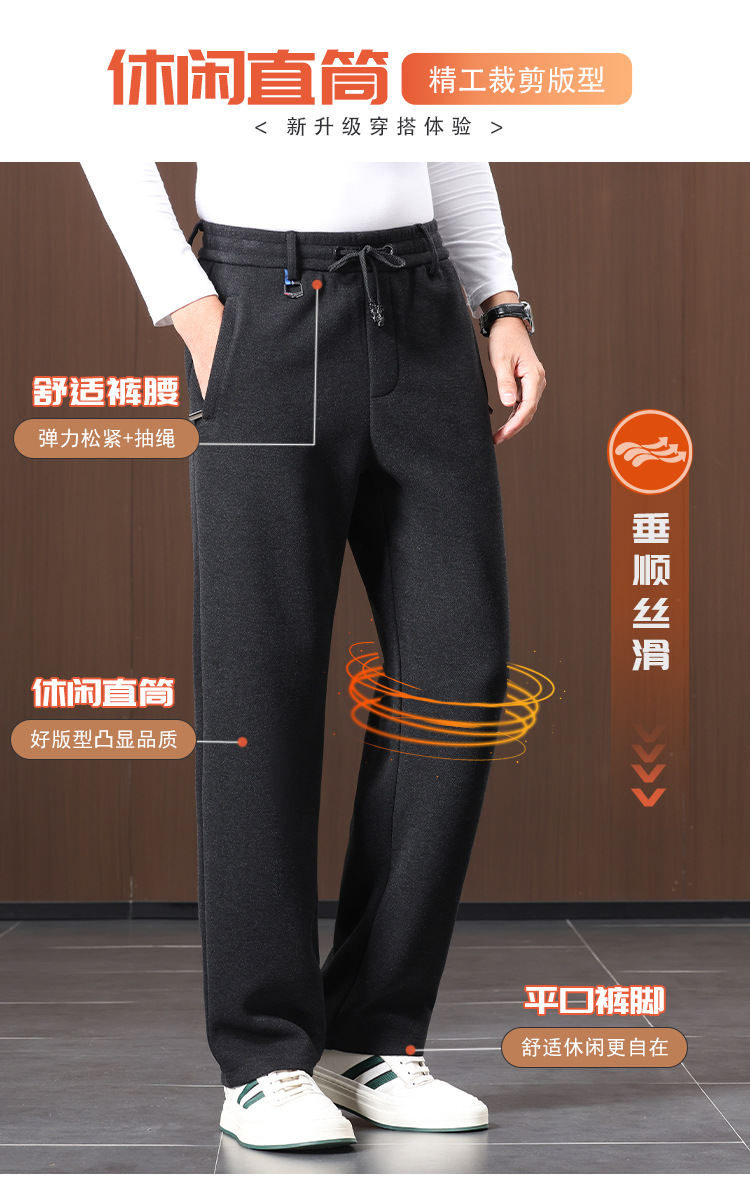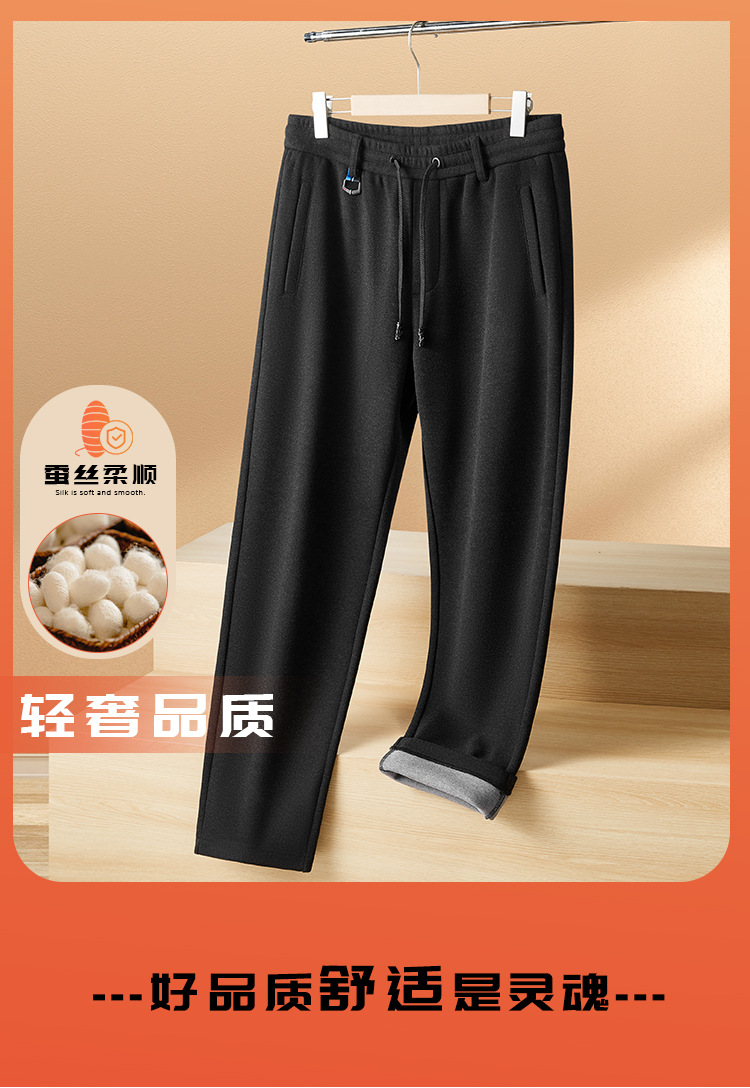 high-end men's casual pants autumn mulberry silk sports pants men's sheep wool straight sweatpants middle-aged fleece lined men's pants