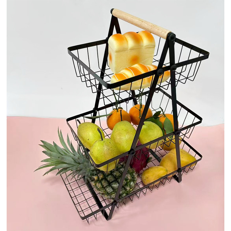 cross-border wrought iron multi-layer storage fruit basket picnic storage kitchen living room dining table household essential storage basket
