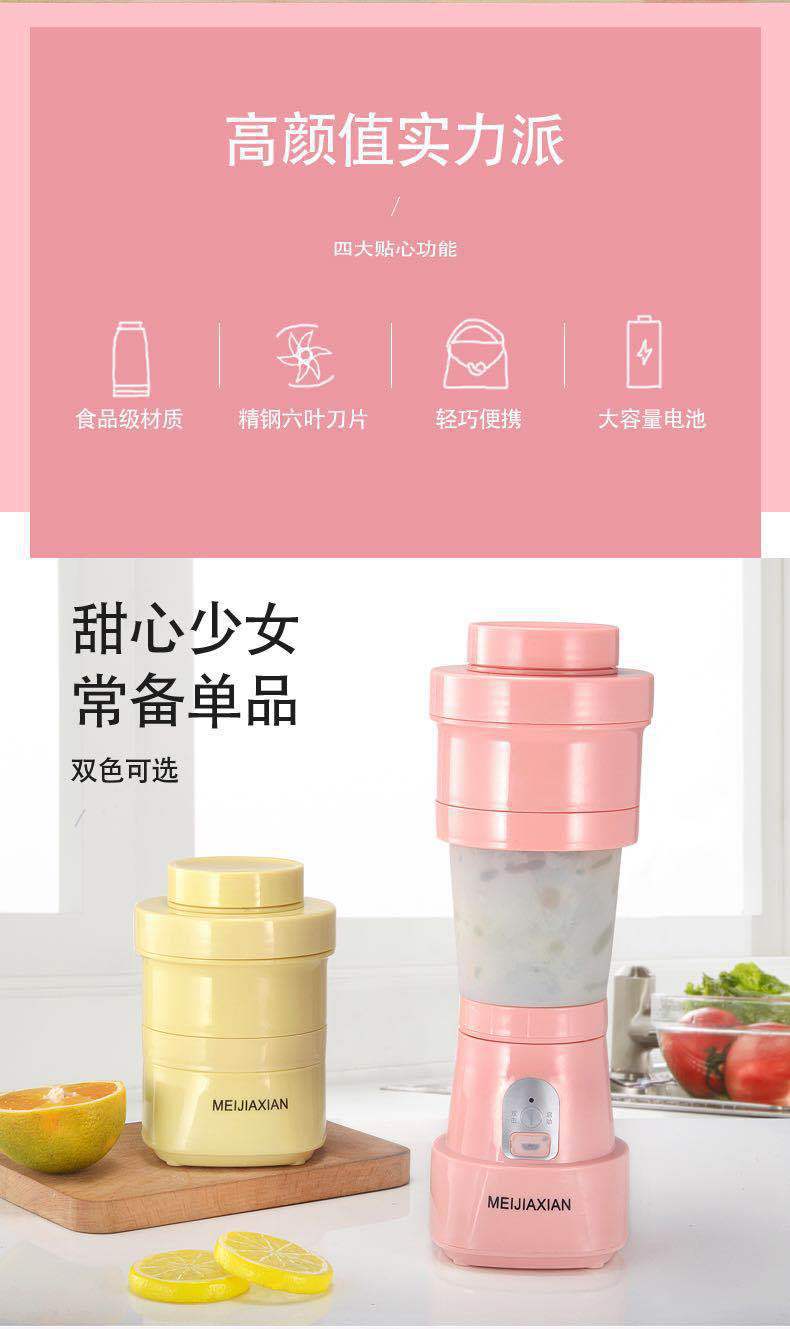 cross-border portable retractable juicer cup outdoor drinking glass rechargeable folding juicer mini electric blender