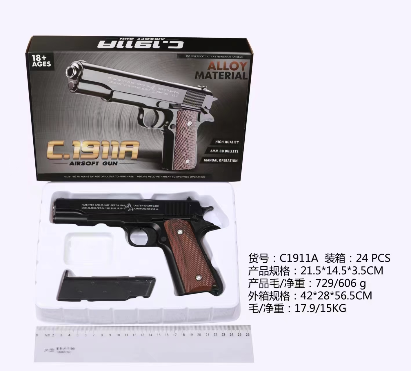全合金(合金弹盒)图片上标有 箱规,毛净重