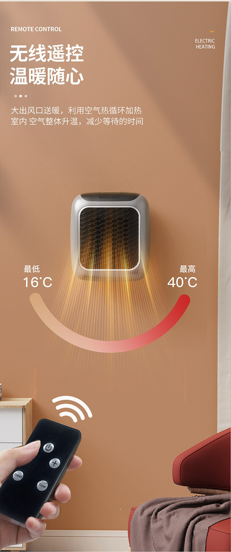 small household convenient wall-mounted desktop heater mini heater under desk office square heating temperature control