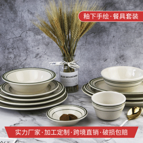 hand painted green three-line coffee cup milk cup and saucer 250ml
