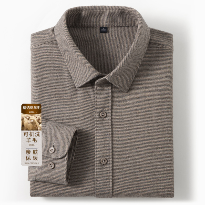 [cotton + wool] high quality wool shirt men's long sleeve lapel double-sided brushed autumn and winter new shirt warm