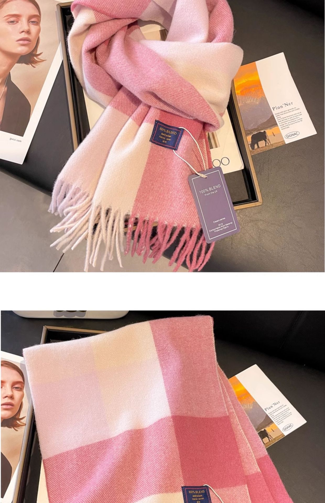 tassel colorful plaid white gray and pink