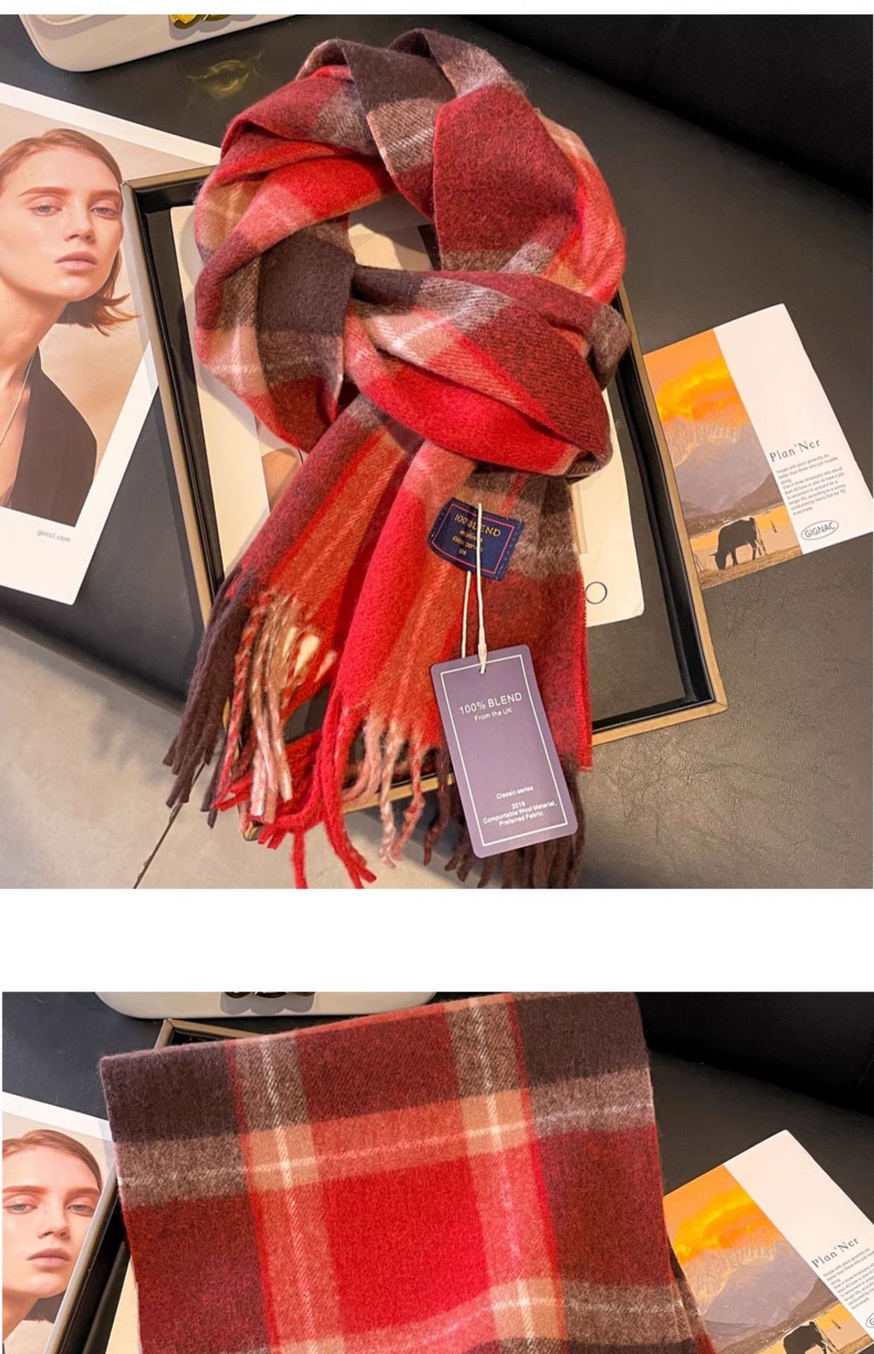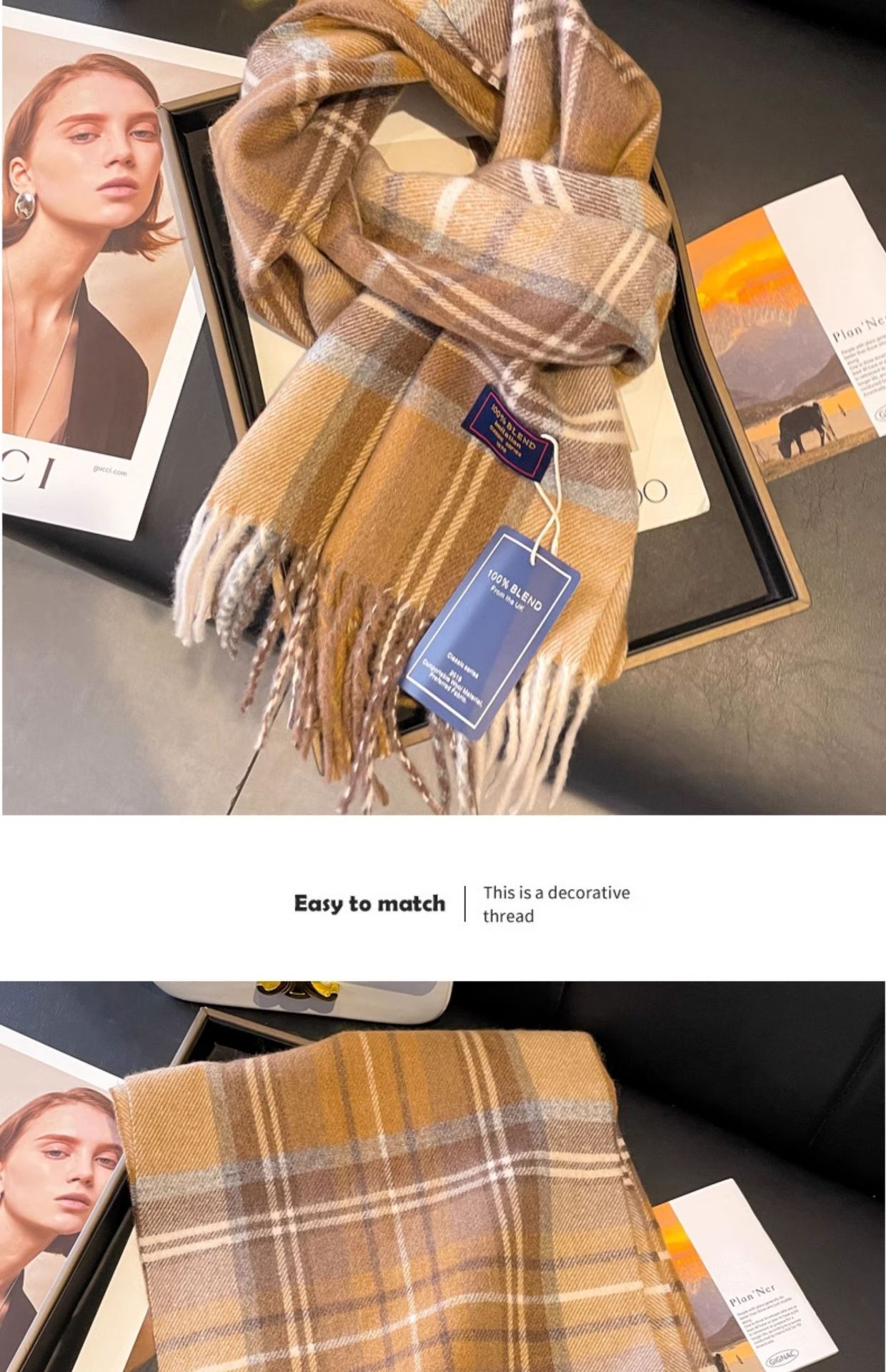 tassel colorful plaid khaki beige