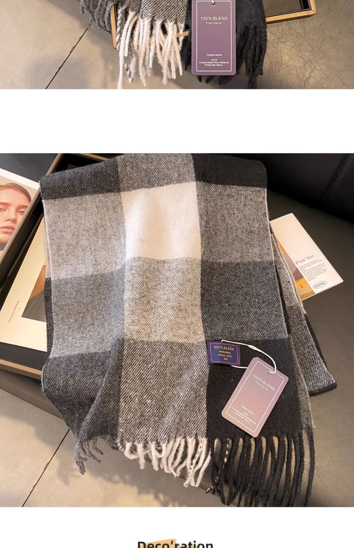 tassel colorful plaid gray white gray
