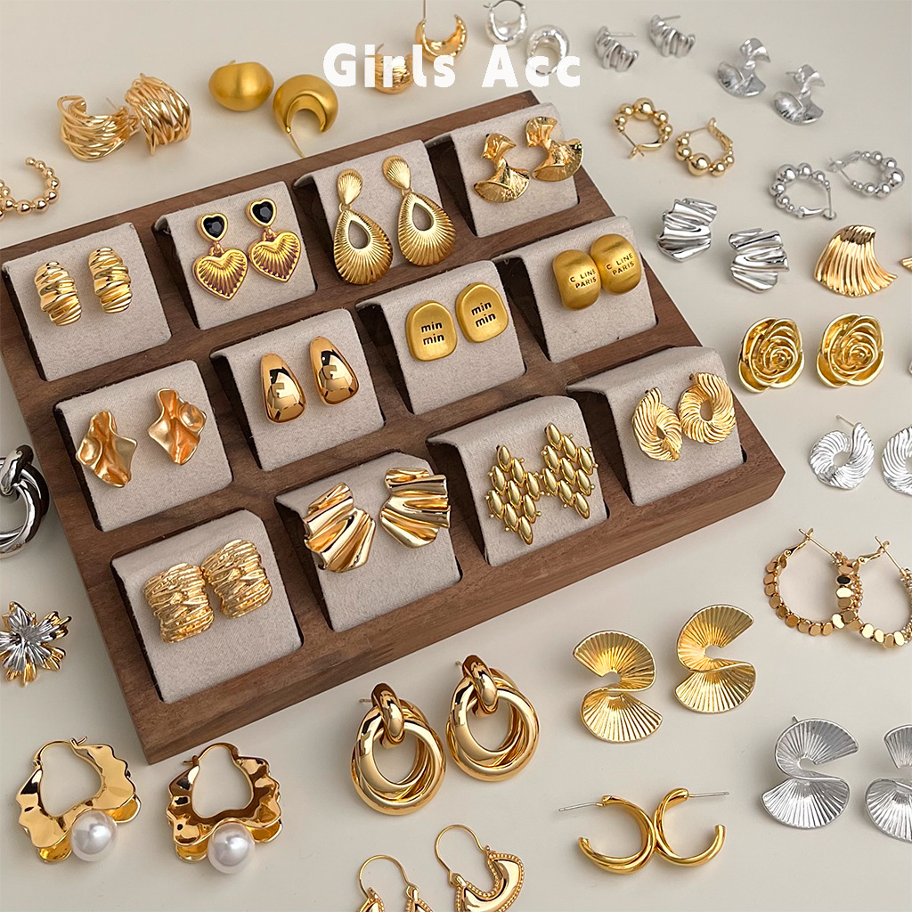 golden ball ear ring-silver needle