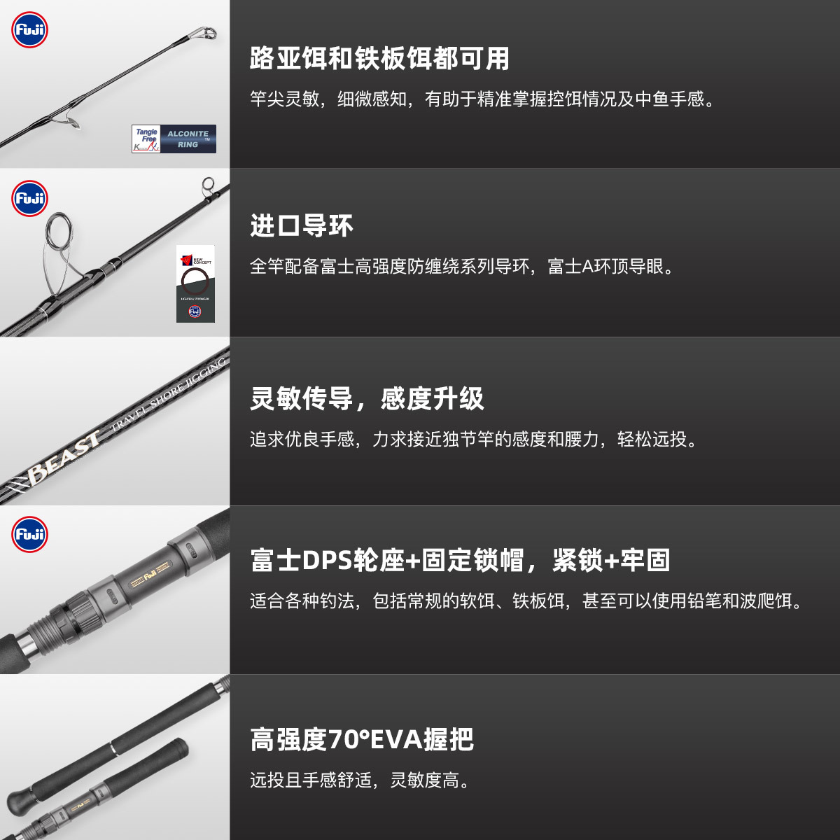 3, suitable for a variety of fishing methods, conventional iron bait, even pencil and wave climbing can also be used.