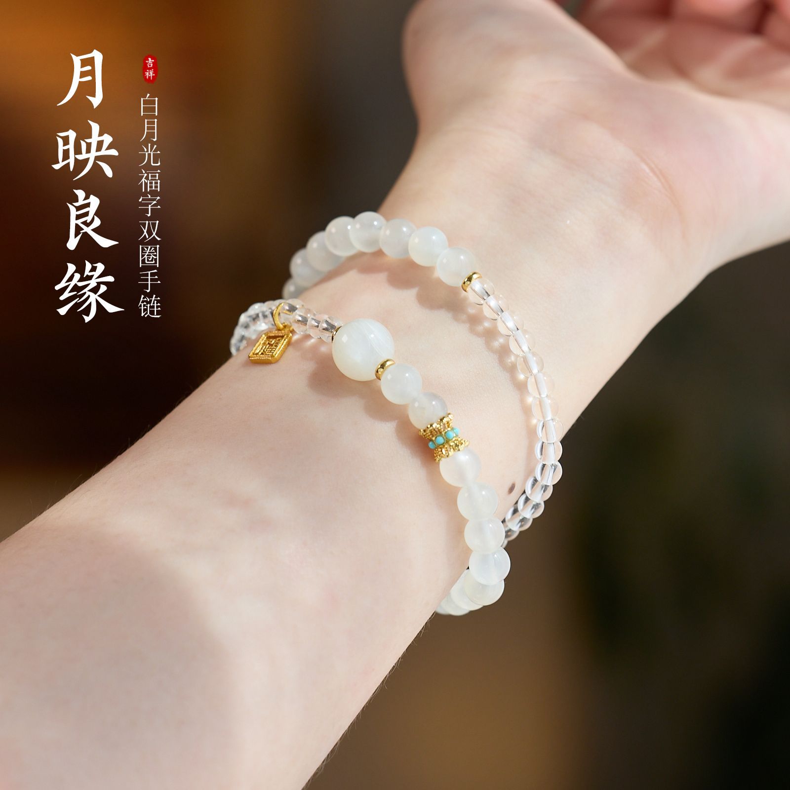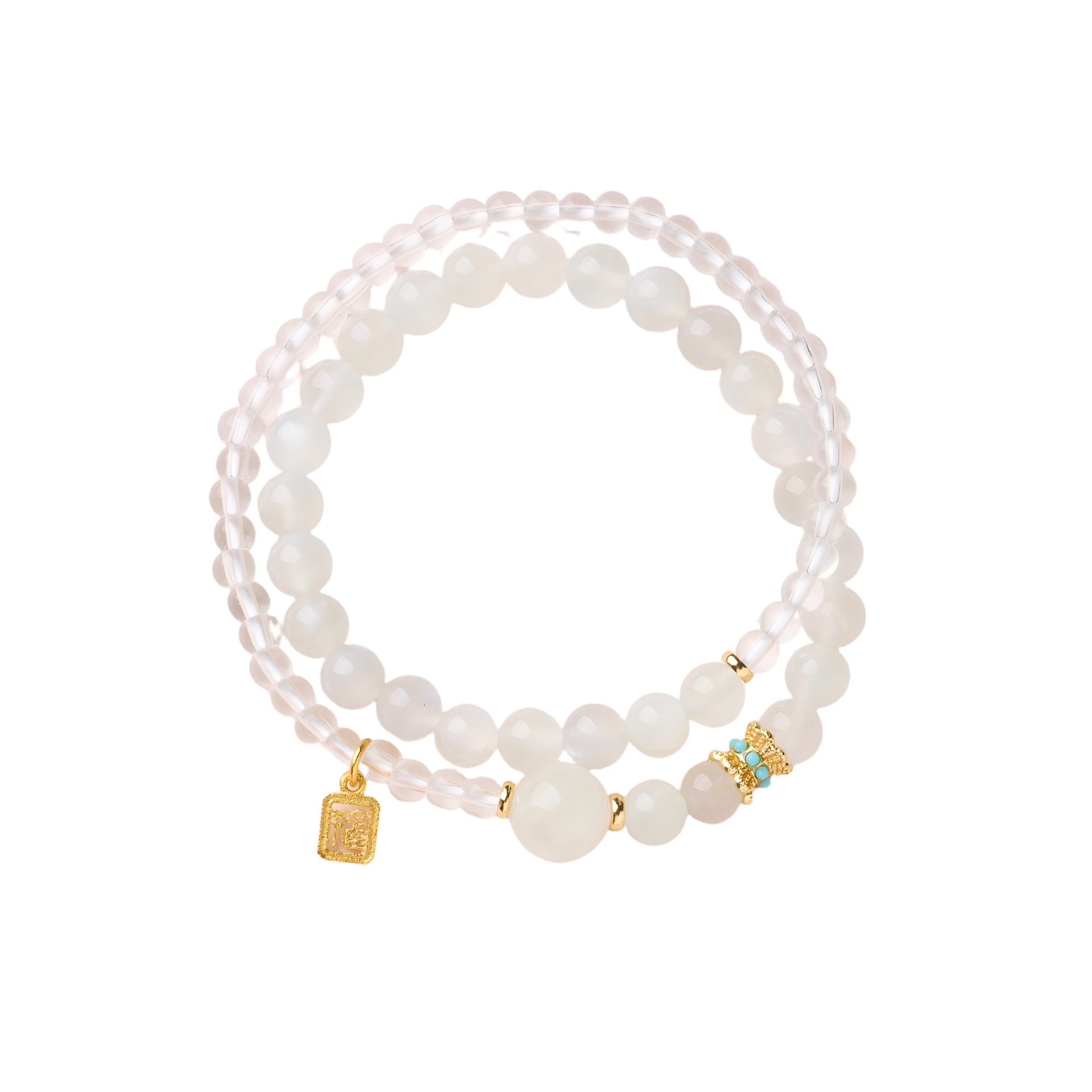 | name | 6mm white moonlight white crystal b fu character drip double ring bracelet