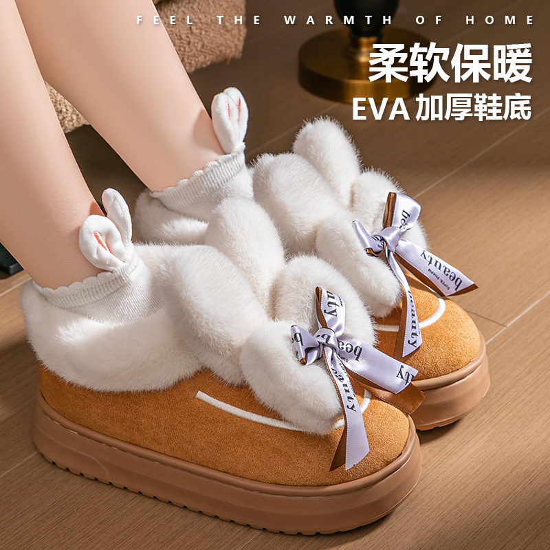 2025 new ankle wrap cotton slippers women's autumn and winter interior home bag heel plush warm slugged bottom non-slip snow boots 中文版