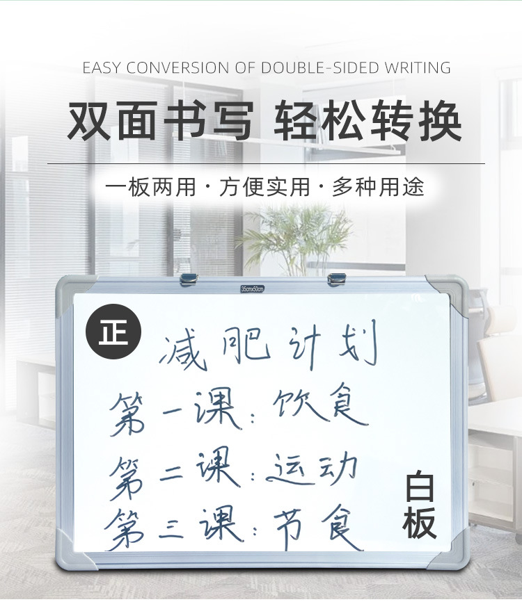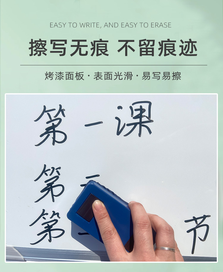 1, this whiteboard is made of high-quality panel, three painted paint, easy to write, easy to wipe;