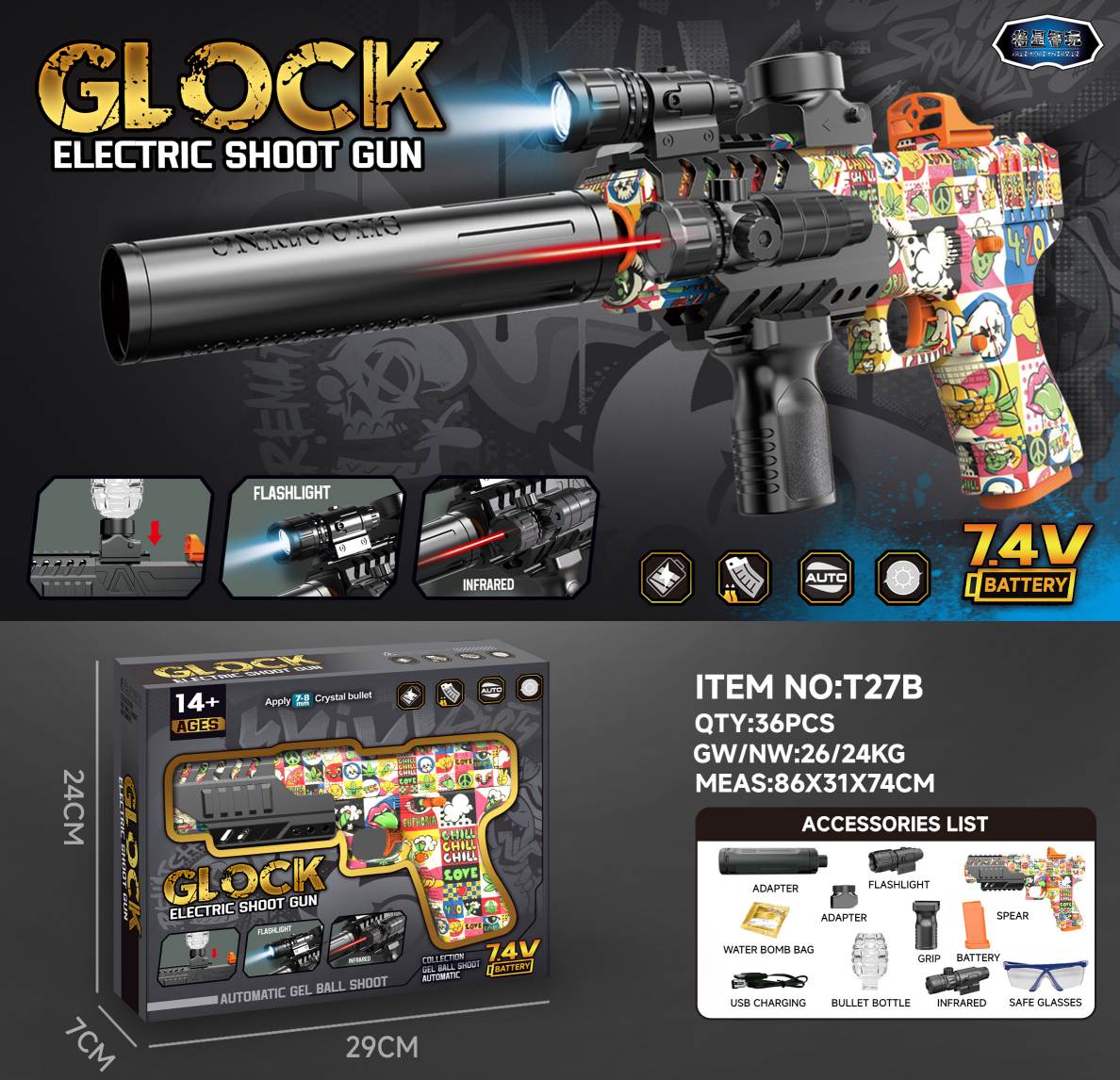 glock spray light electric water bullet gun electric upper supply bomb