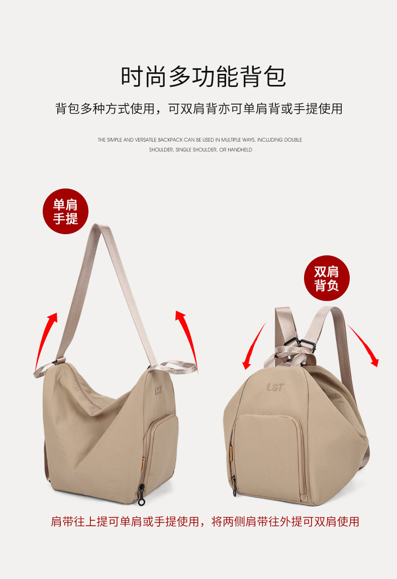 simple style breathable zipper double joint washed backpack new crossbody bag men's and women's lightweight college student shoulder bag 中文版