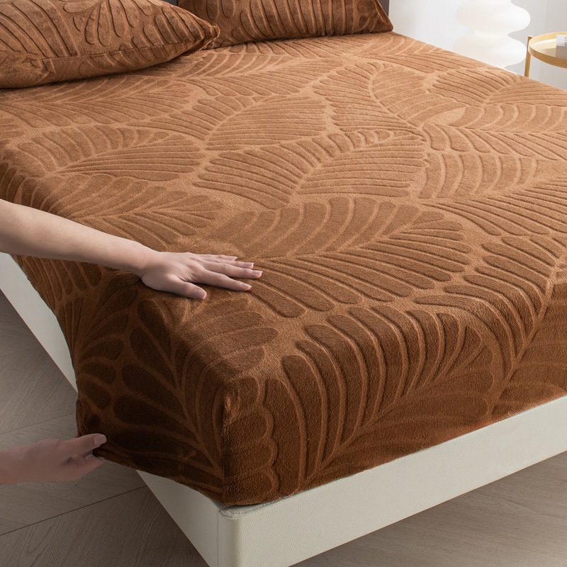 2025 new warm fleece encryption carved milk fiber fitted sheet popular popular mattress protective cover