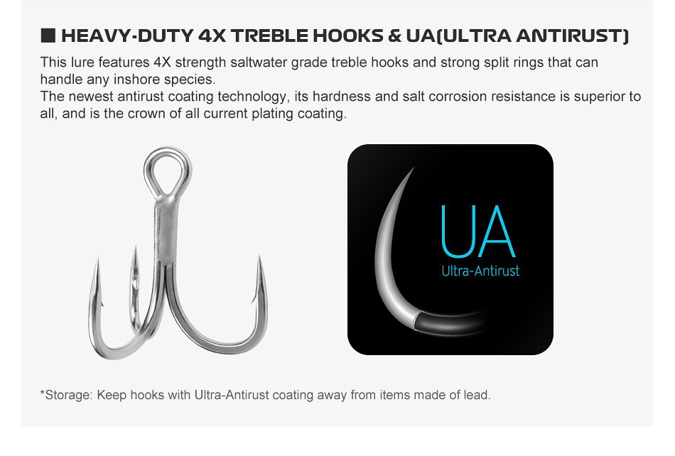 2. steel wire conjoined design with new rust-proof fishhook. (new anti-rust fishhooks should not be placed together with lead products)