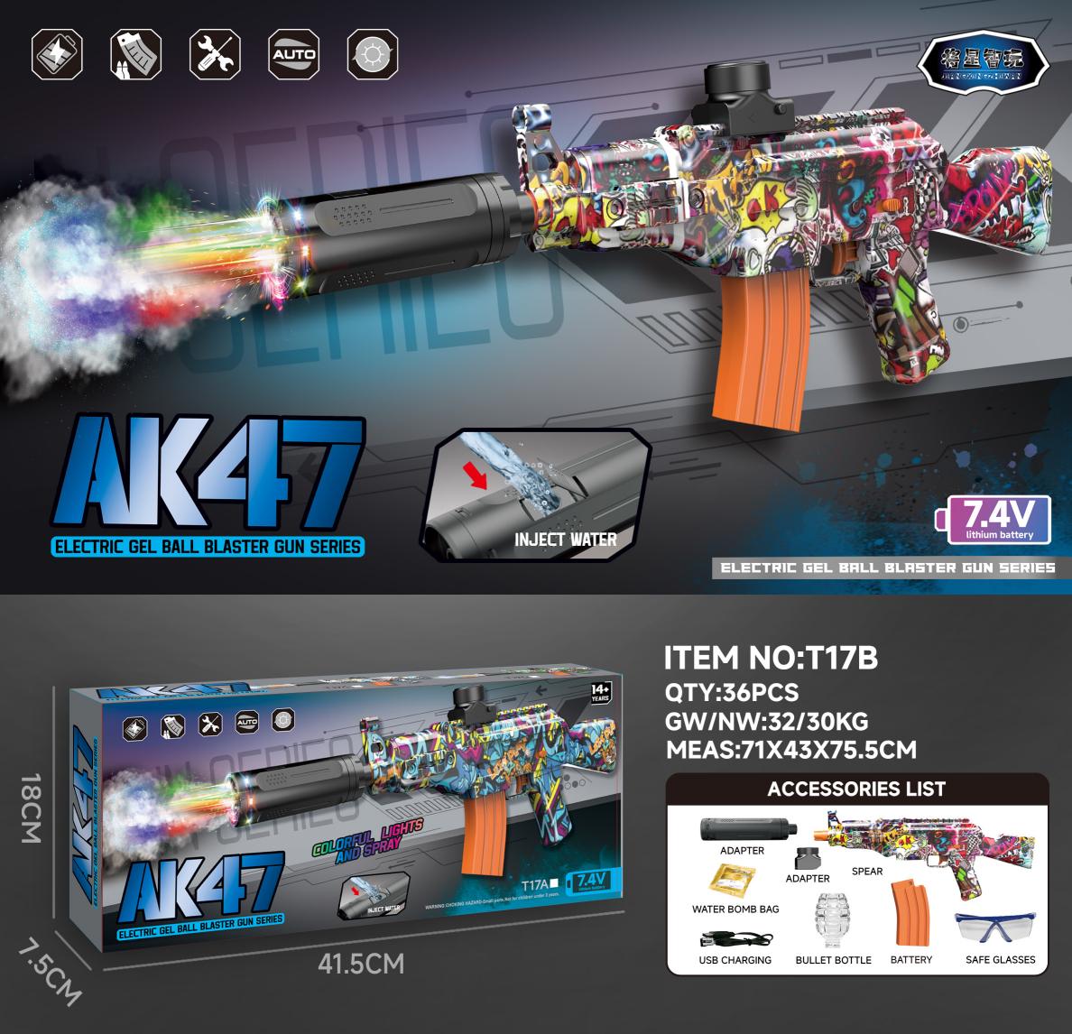 ak47 spray light electric water bomb gunner self-integrated for bomb