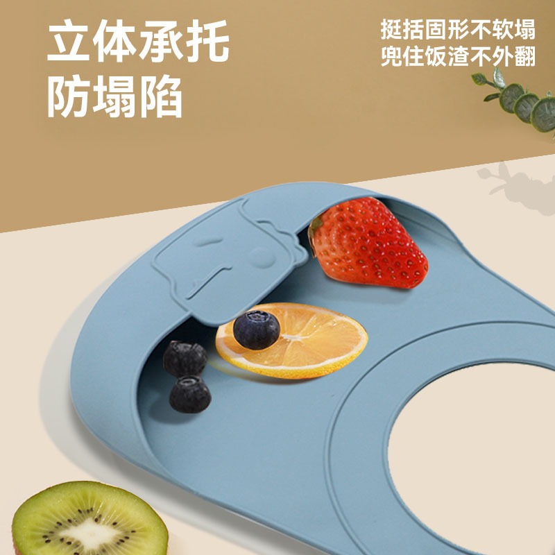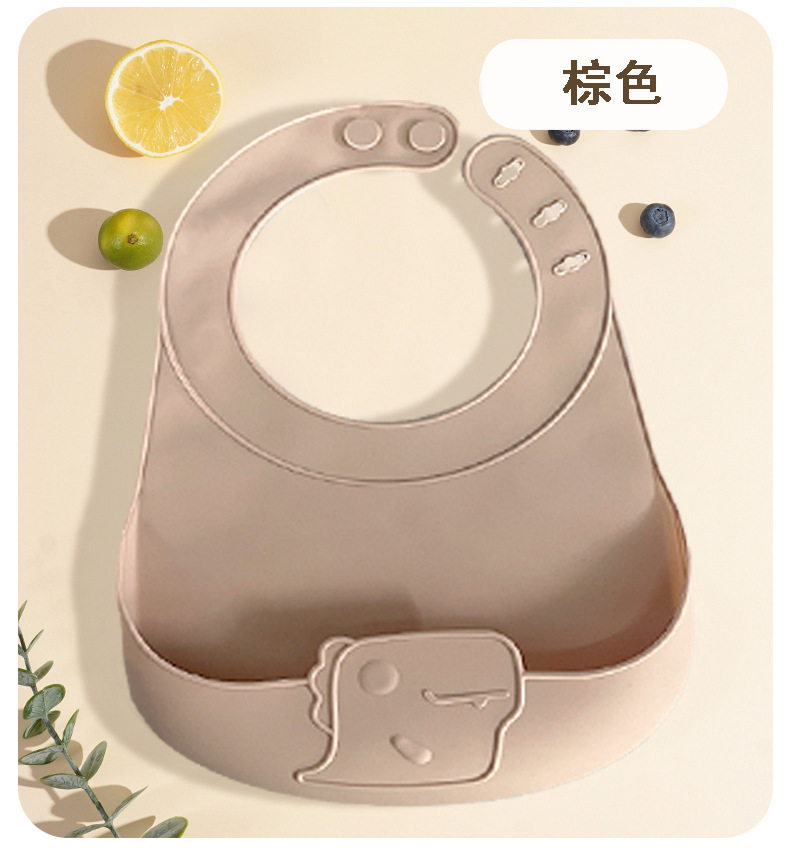 cross-border new arrival baby's silicone bib food grade water and dirt resistant bib dinosaur silicone pinny three-dimensional wholesale 中文版