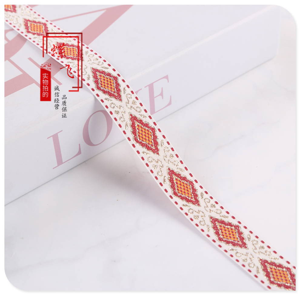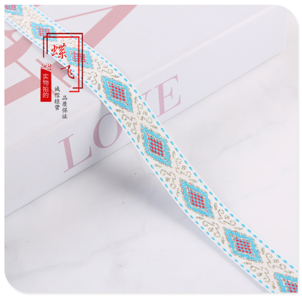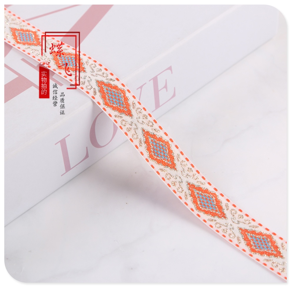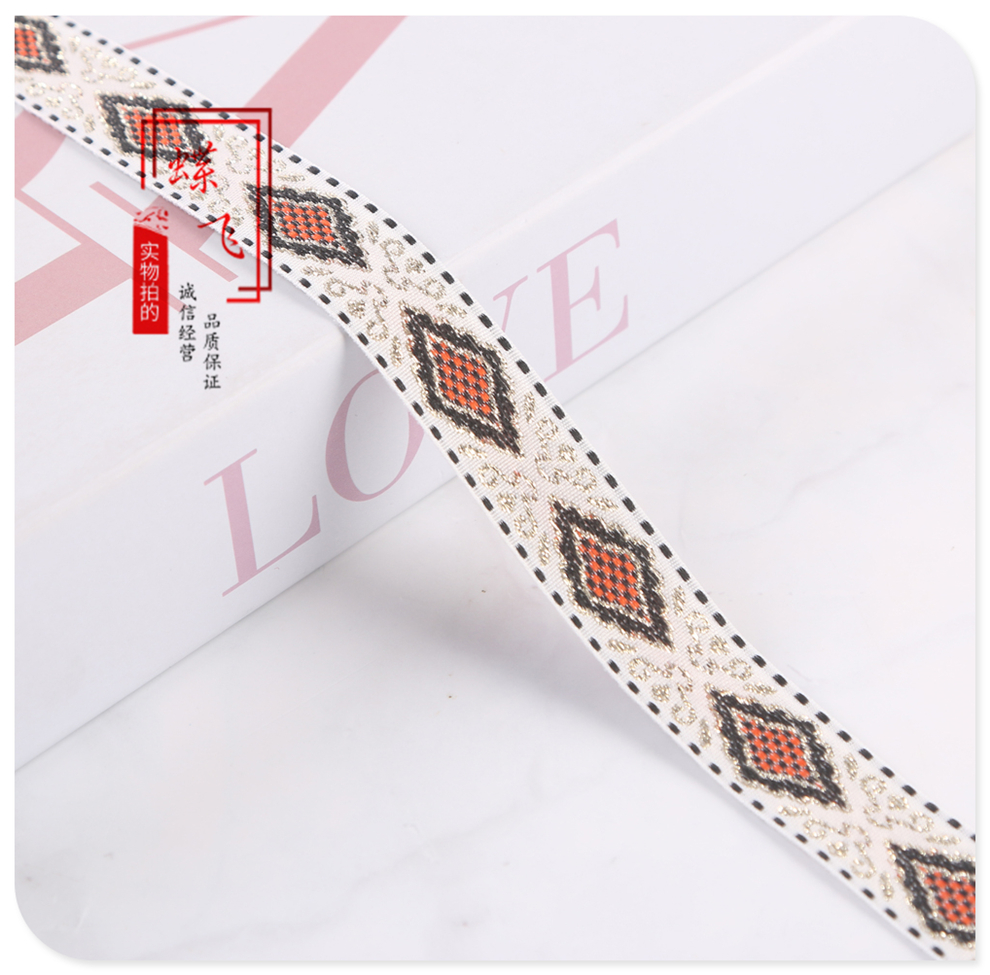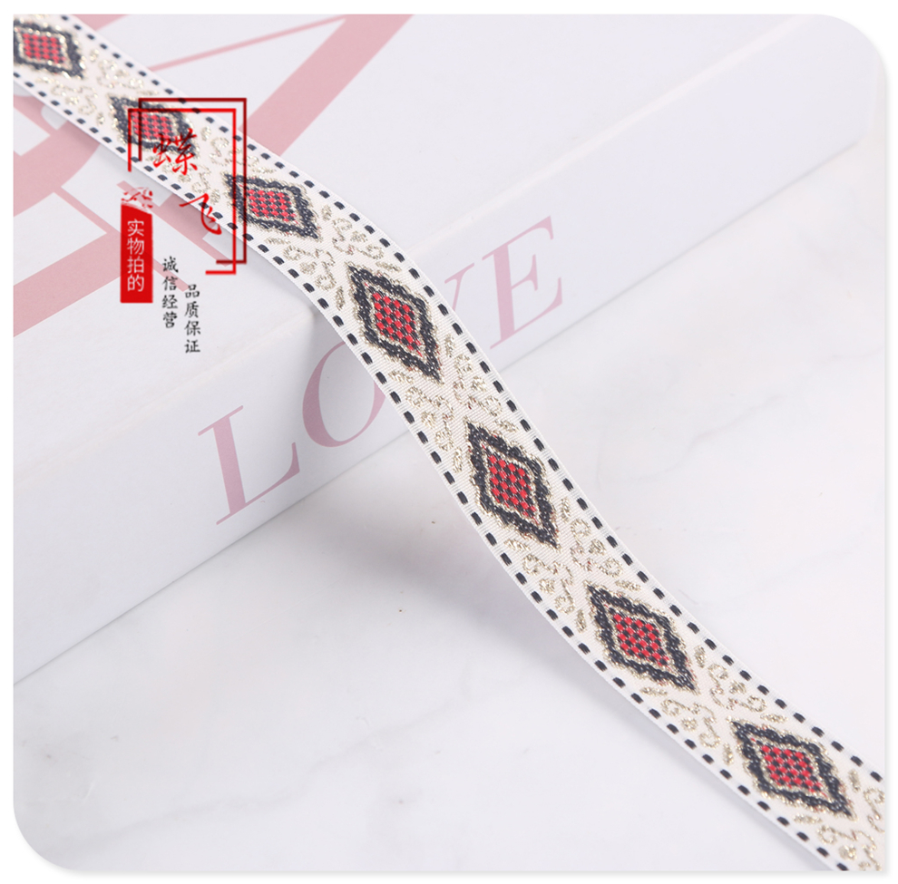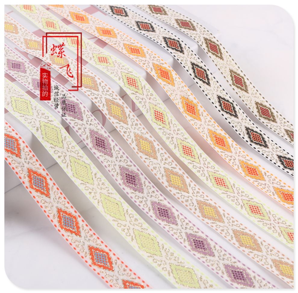 2025 new 2cm wide polyester jacquard net tape ethnic style colorful rhombus pattern lace shop bag shoulder strap wholesale 中文版