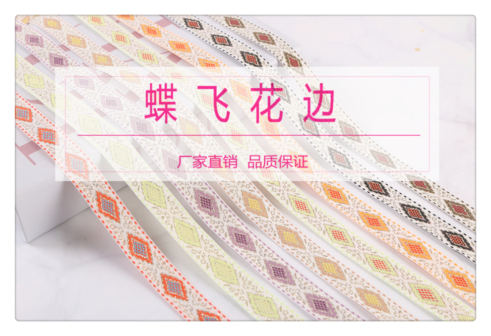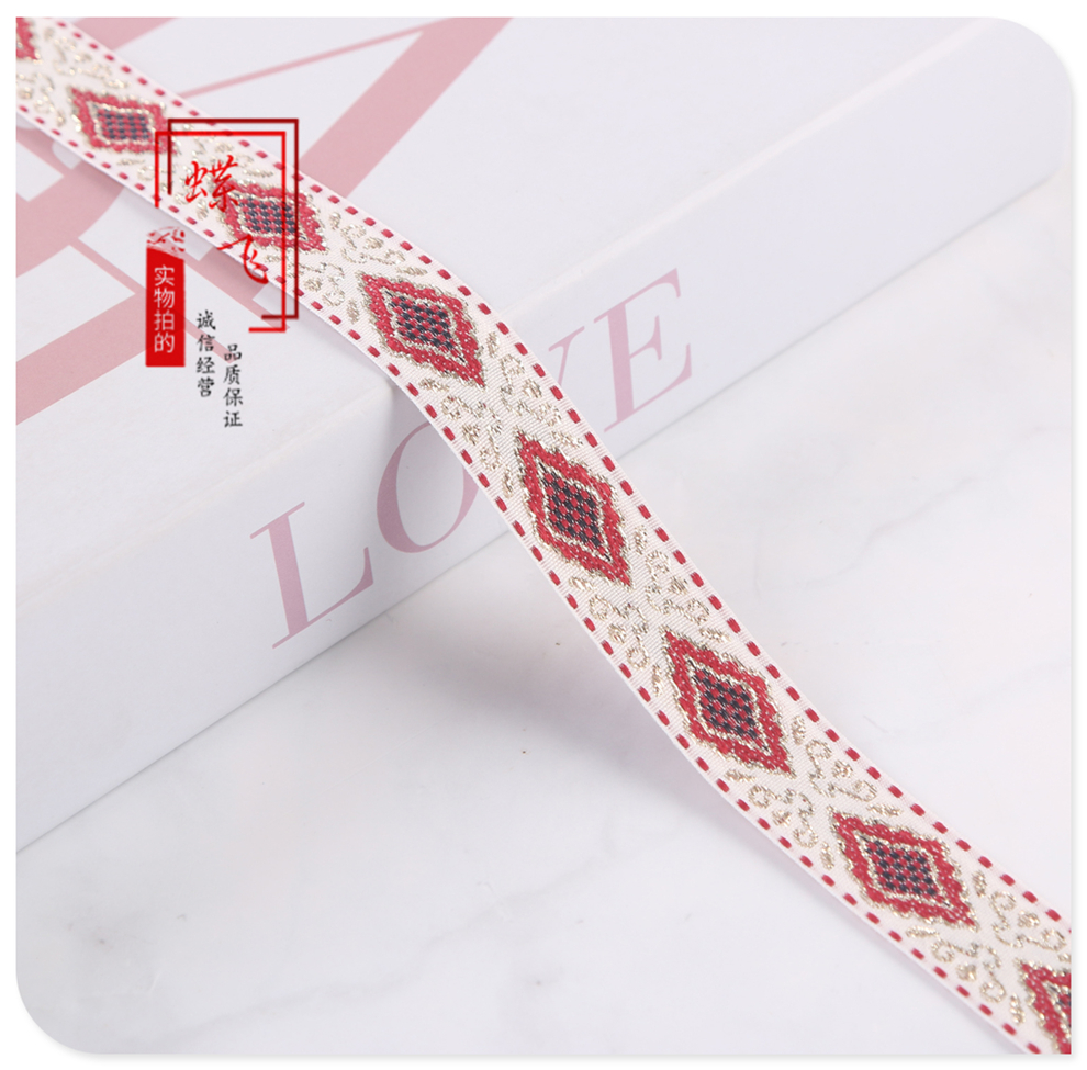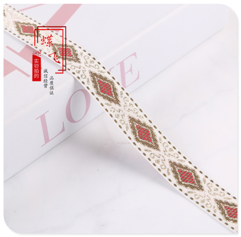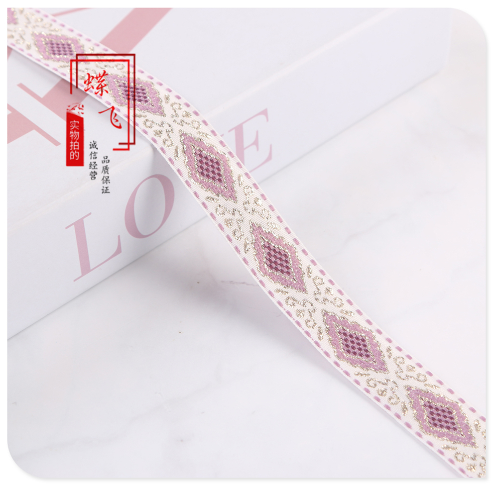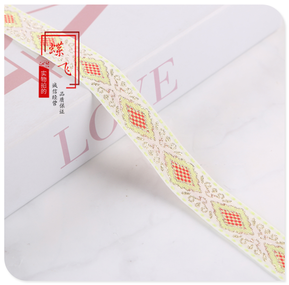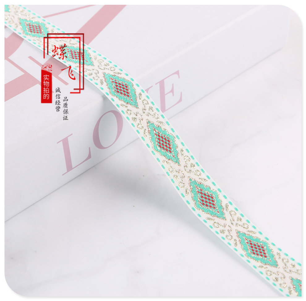 2025 new 2cm wide polyester jacquard net tape ethnic style colorful rhombus pattern lace shop bag shoulder strap wholesale 中文版