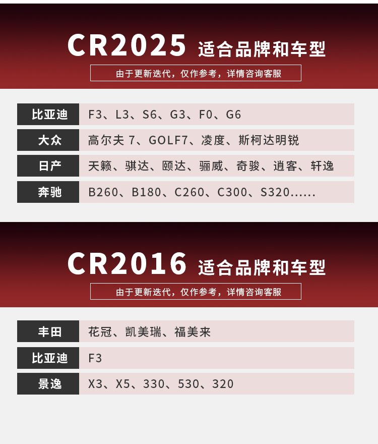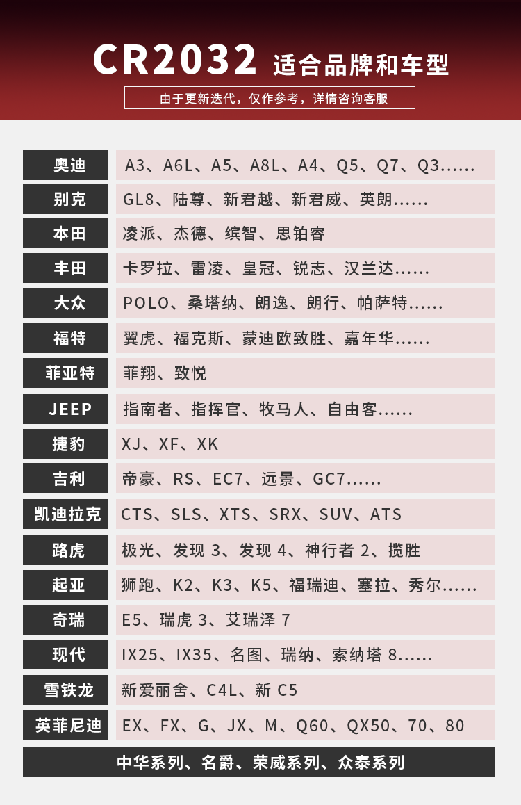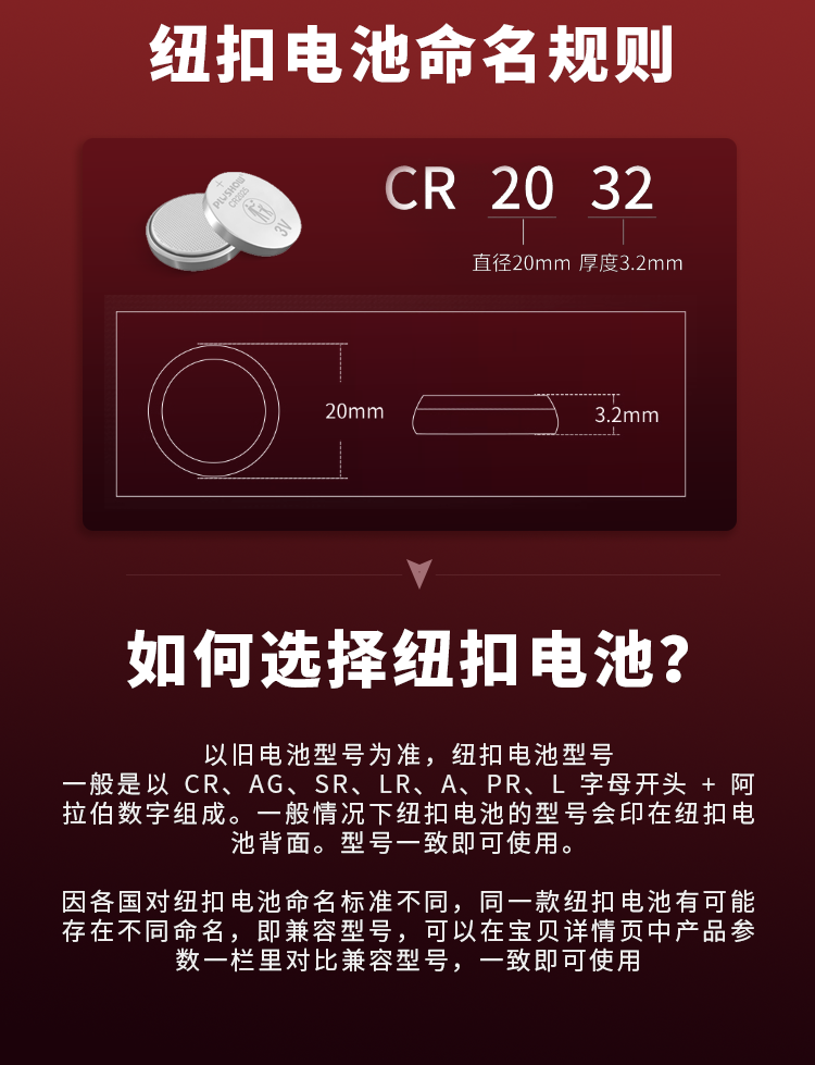 cr2032 car remote control key 3v button lithium battery 2025/2016/2450/2430/1632/1225 中文版