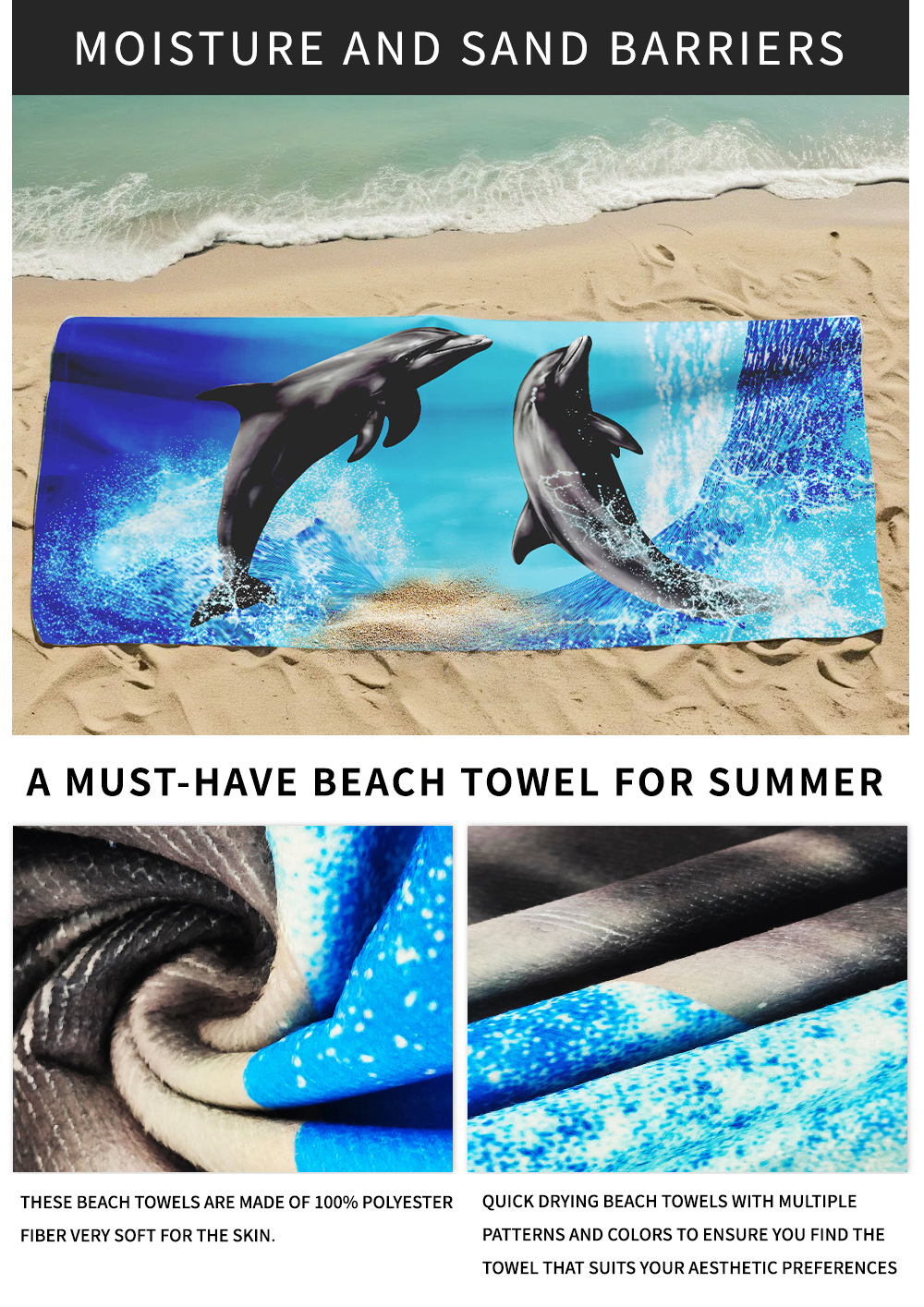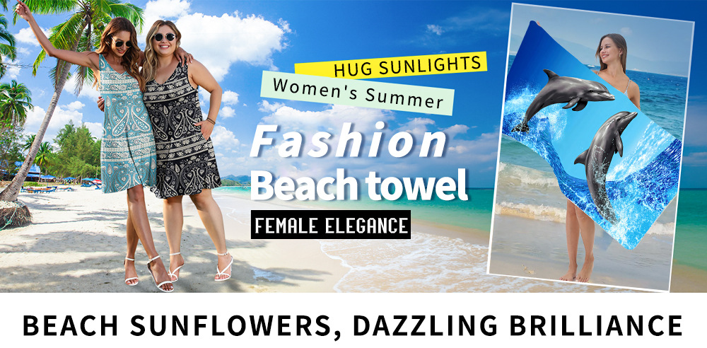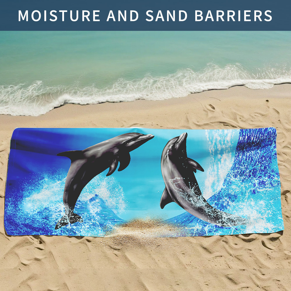 amazon cross-border printed dolphin towel microfiber beach towel graphic customization swimming absorbent beach bath towel 中文版