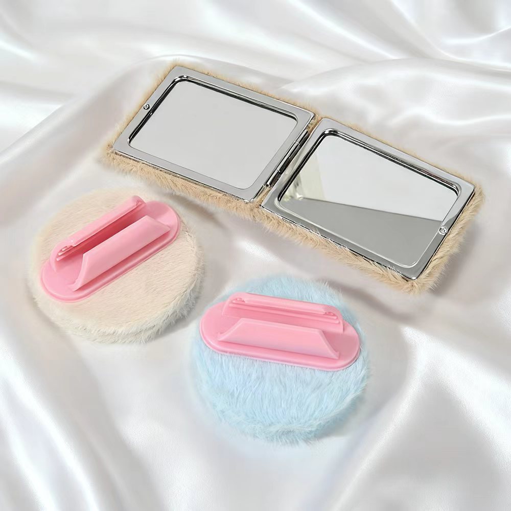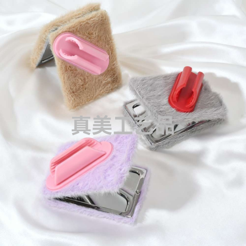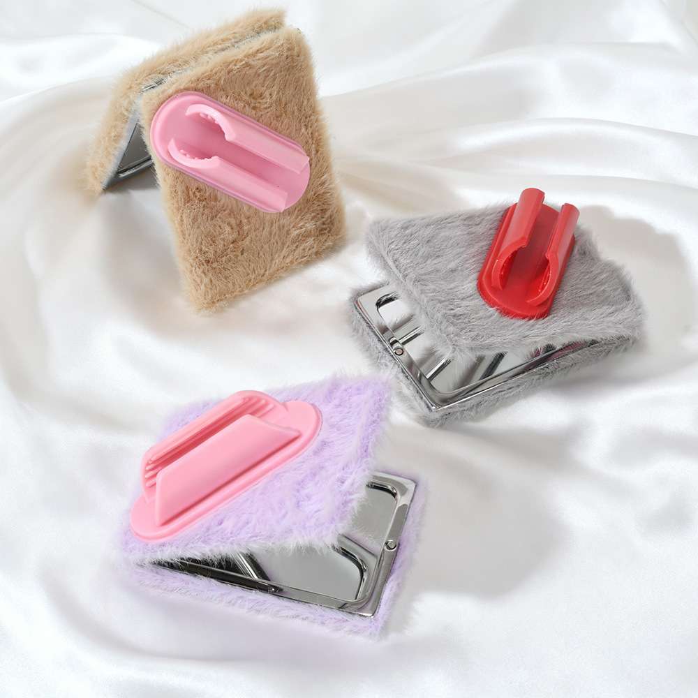 cute double-sided plush carry-on cosmetic mirror ins portable furry rectangular mirror buckle girls' mirror multifunctional