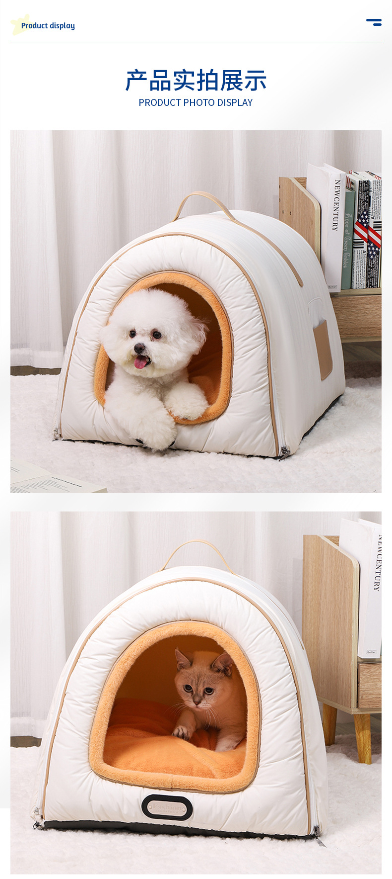 1. it is completely removable and washable: the coat is completely separated from the liner. if it is dirty, it is directly removed and washed by machine, which saves pet bed of the complexity of hand washing, and the cleaning efficiency is doubled directly.
