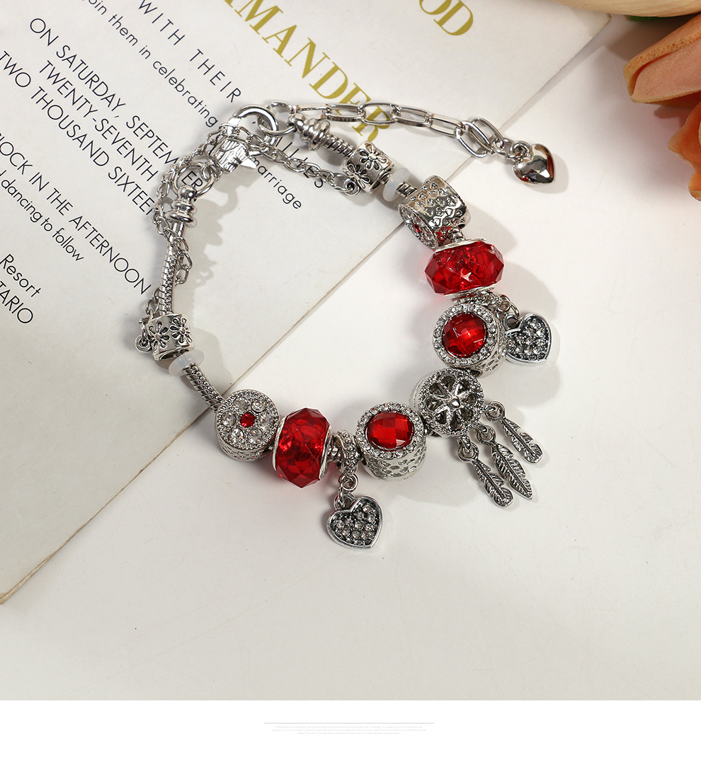 panjia style red crystal beads bracelet for women light luxury minority exquisite dreamcatcher bracelet for free student girlfriend gifts 中文版