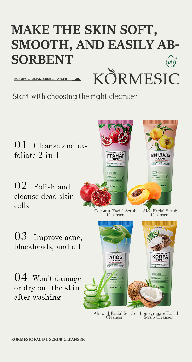 kormesic cross-border fruit facial skin prep scrub series cleaning lotion foreign trade factory wholesale 中文版