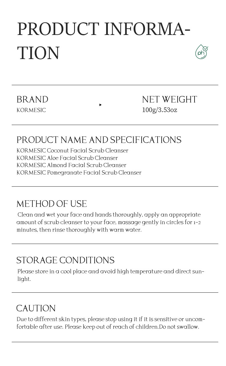 kormesic pomegranate face skin prep scrub [only for export sales, prohibited domestic sales, purchase is default exemption ¥2.2 2894 bottle available