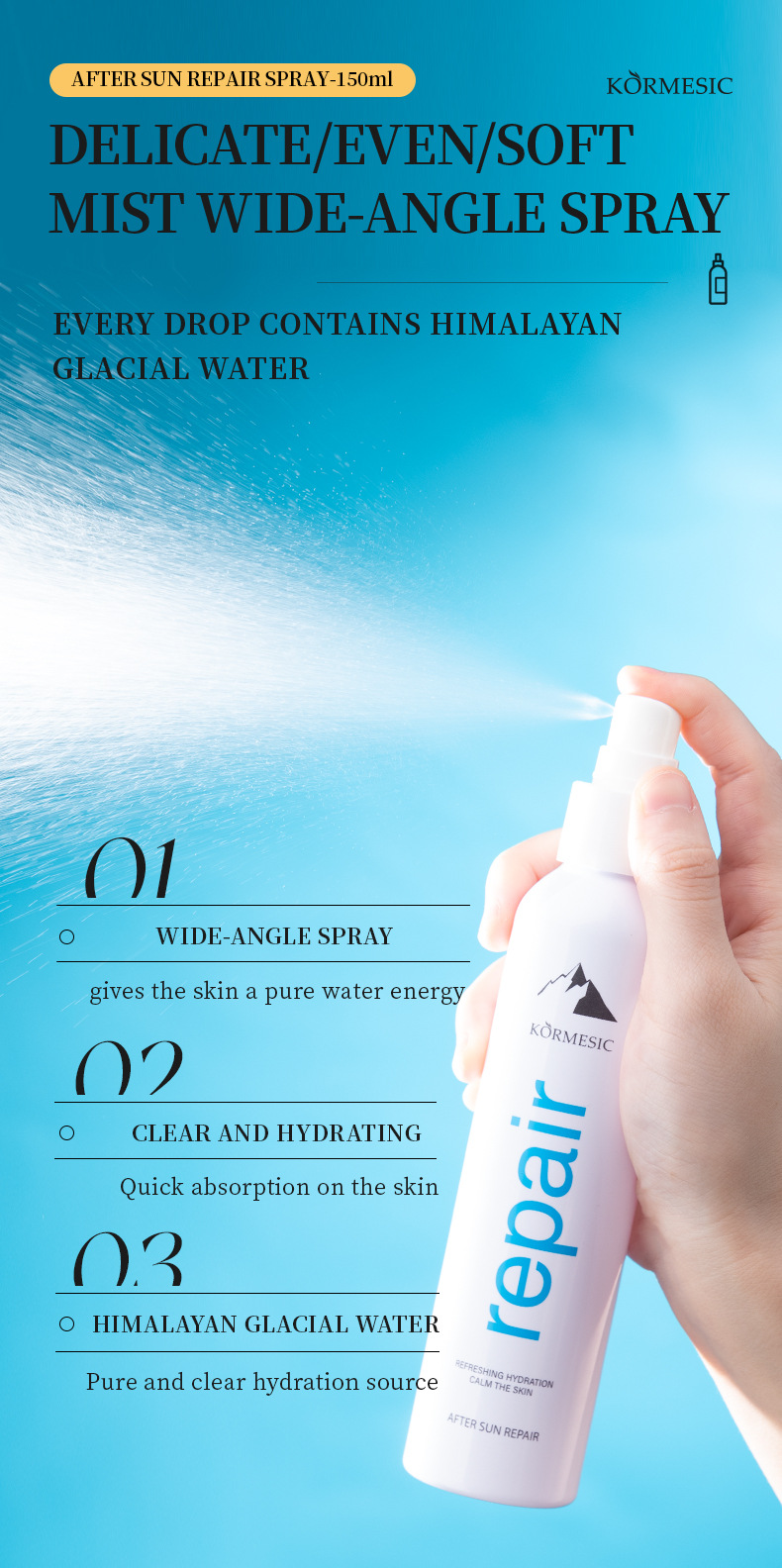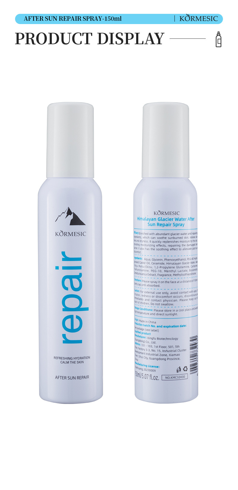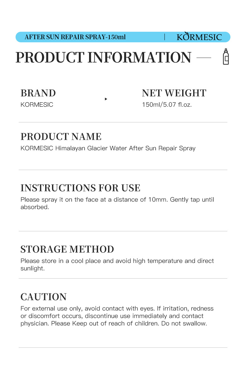 kormesic himalayan glacier water post-sun spray [only for foreign trade export sales, domestic sales are prohibited, purchase is silent
