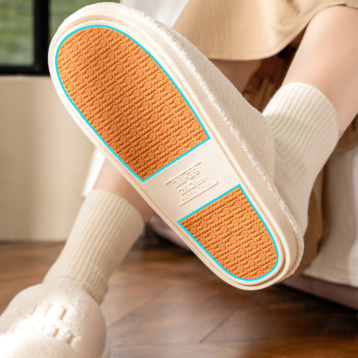 温馨提示:EVA材质拖鞋需避免高温暴晒,长时间高温会导致鞋子产生变形。