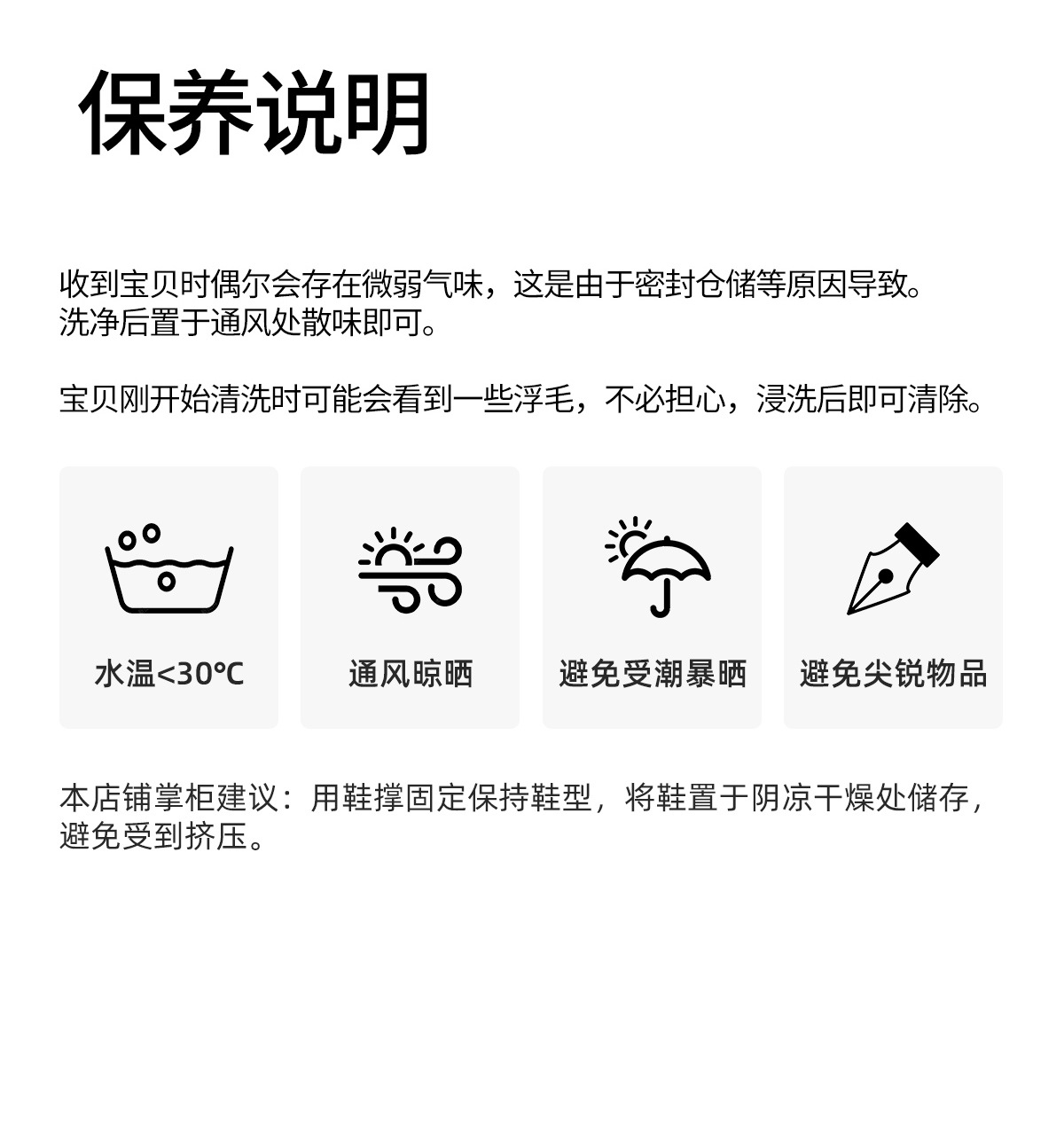 气味问题:本店为厂家直销,新生产的鞋子密封包装极个别会带气味,无关质量, 放置阴凉通气处气味会散去。