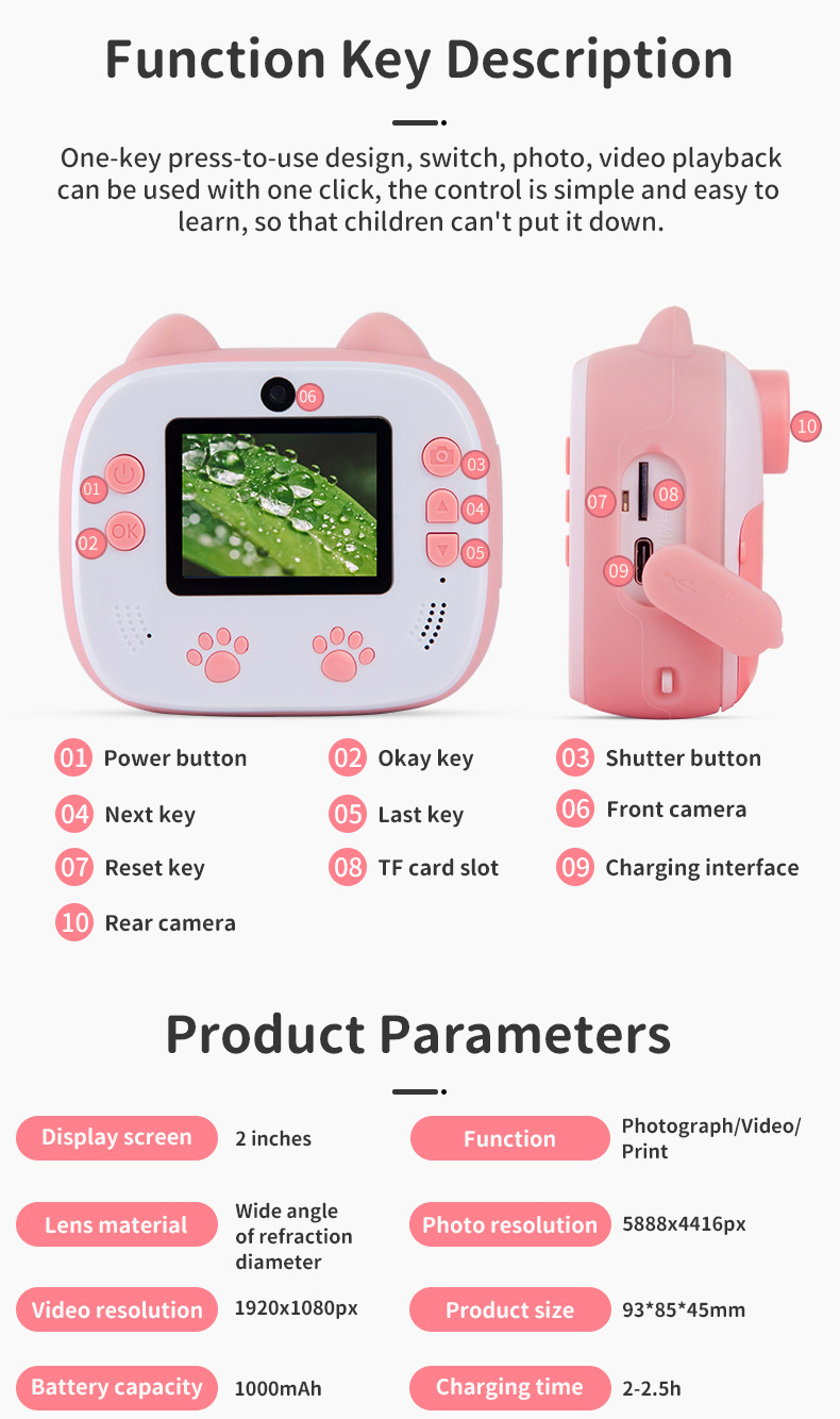 new cross-border children's thermosensitive paper printer digital intelligent slr camera polaroid camera