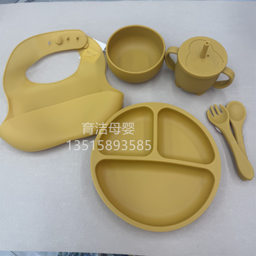 silicone children's tableware baby grid plate bib baby suction cup silicone bowl water cup spoon fork 中文版