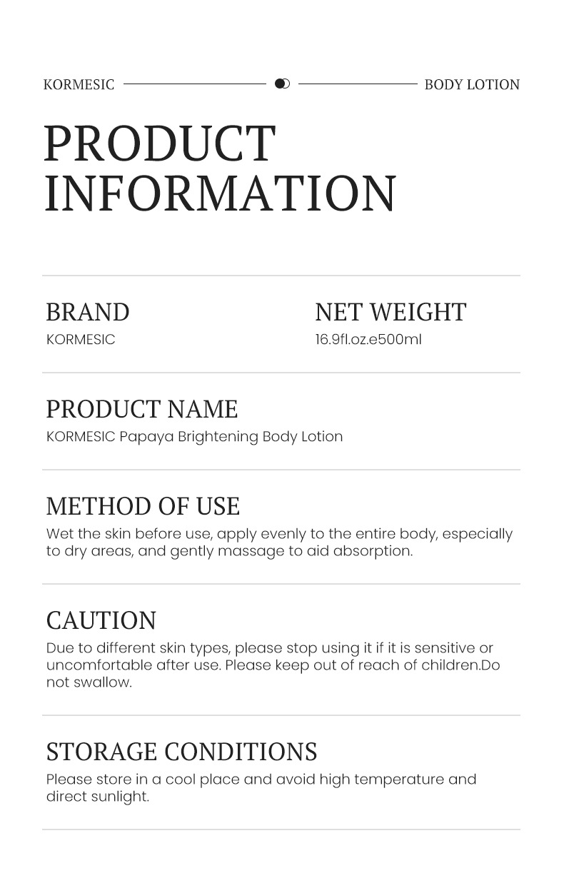 kormesic papaya body lotion [only for export sales, prohibited domestic sales, purchase is the default disclaimer and