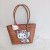 brown one-shoulder basket with letters hello kitty embroidery