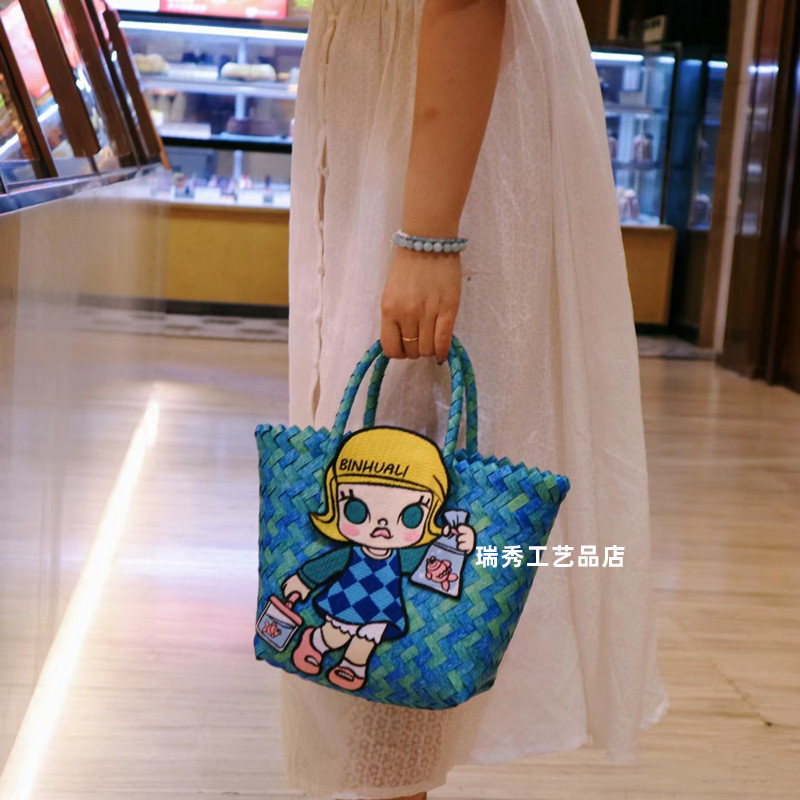 beige portable basket plus bubble doll embroidery