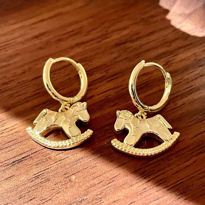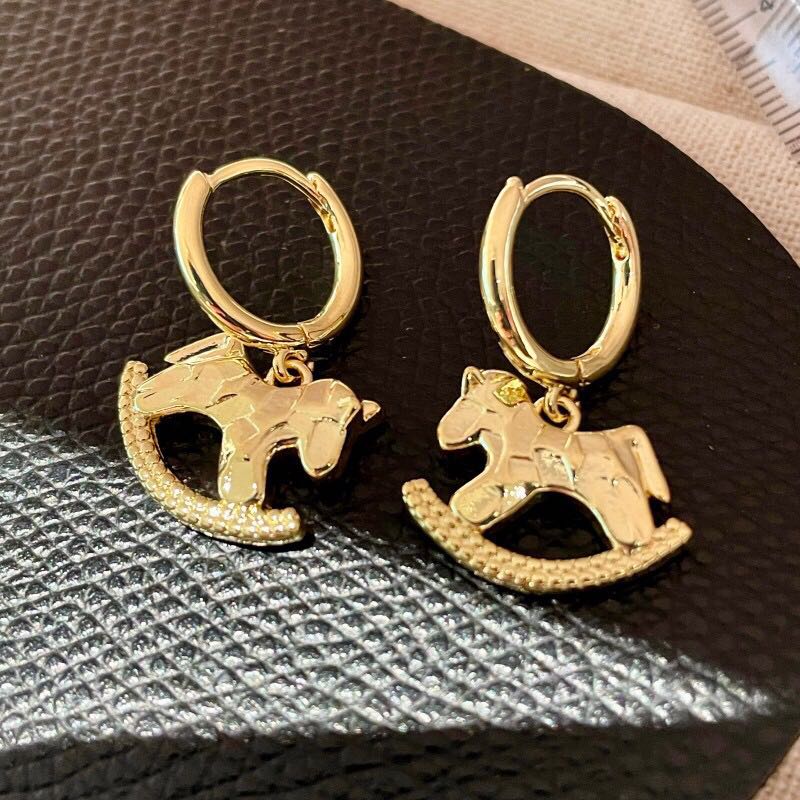 trojan horse ear clip golden earrings women's unique beautiful earrings 2025 high-grade texture pony ear hook eardrops 中文版